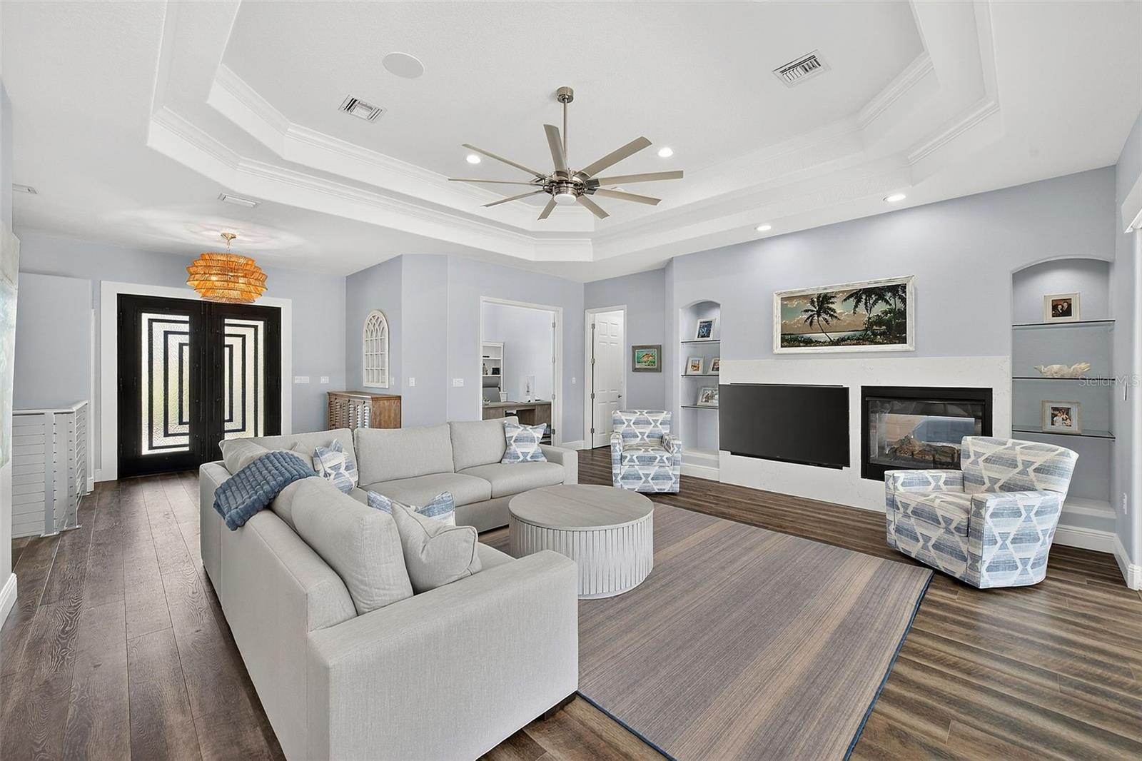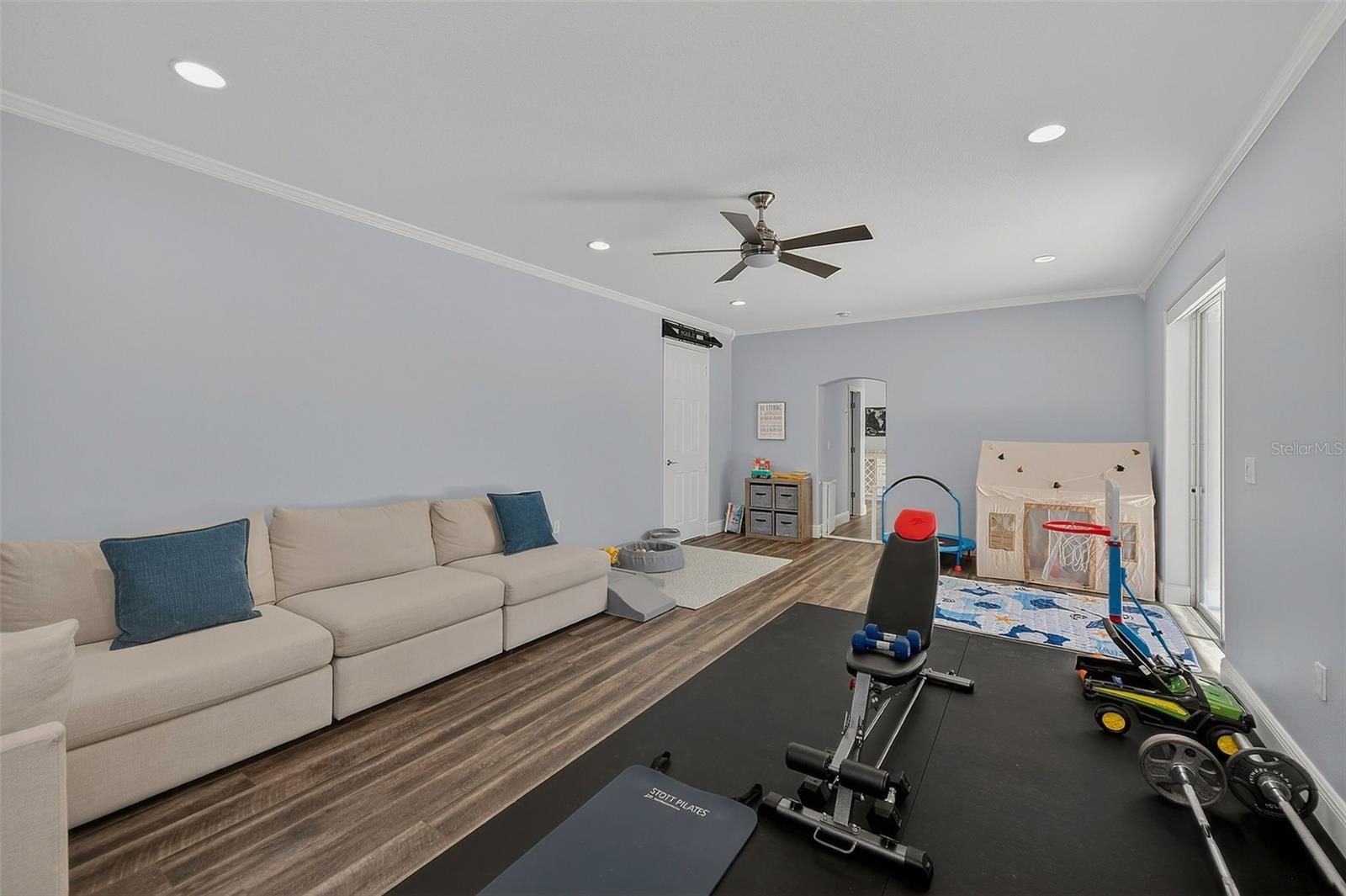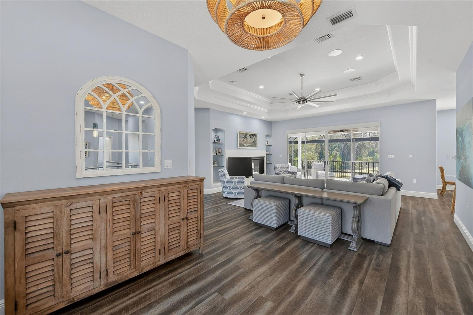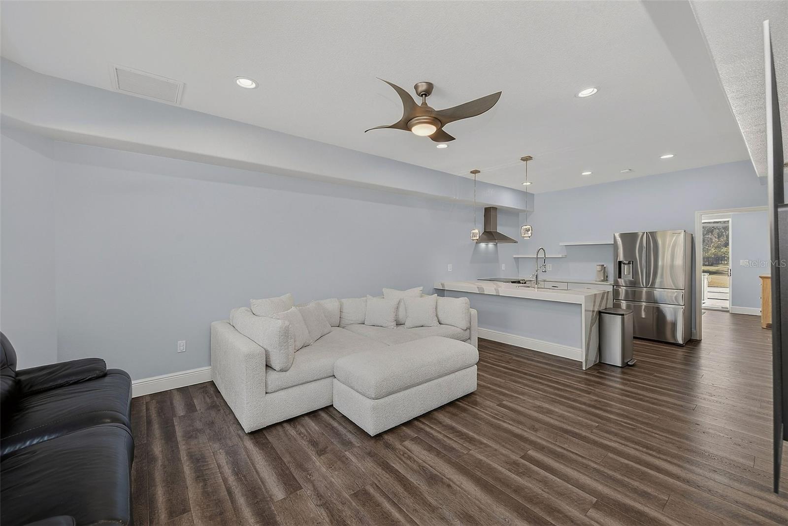 A rare opportunity to own over 5 acres in the Tampa Bay area--where privacy, space, and convenience come together in a way that's nearly impossible to find. Tucked behind a private gated entrance and long driveway, this exceptional estate offers security, seclusion, and the peaceful setting buyers dream about, while still being just minutes from shopping, dining, beaches, and everyday essentials.The upstairs main living level truly feels like the heart of the home, designed to make both everyday living and entertaining easy. Here you'll find a spacious primary suite, two additional bedrooms, and a dedicated home office that works perfectly for remote work or study. The kitchen flows naturally into the living areas and is complemented by a convenient dry bar, while an indoor laundry room and abundant storage add practical comfort. Tray ceilings, natural light, and large sliding doors open to an elevated porch overlooking the property, all protected within a dramatic two-story screened birdcage--perfect for enjoying the outdoors without sacrificing comfort.The outdoor living experience continues on the lower level of the screened enclosure, where a fully equipped outdoor kitchen with a built-in grill and Green Egg creates an ideal space for entertaining. The backyard includes a large fenced area ideal for outdoor play, recreation, or pets, while the property itself extends well beyond the fenced portion--providing over five acres of usable land, privacy, and possibilities rarely found this close to Tampa Bay amenities.Thoughtfully designed to live like two homes in one, the residence offers exceptional flexibility for multigenerational living, extended guests, or lifestyle versatility. The entire lower level functions as a true second living space, featuring its own full kitchen, living area, additional dry bar, large locked storage closet, a fourth bedroom, and a spacious bonus flex room currently used as a gym and playroom. A second laundry area, conveniently accessible from the screened porch, adds everyday practicality.Major recent upgrades provide peace of mind and long-term value, including a new metal roof and new HVAC system, allowing the next owner to focus on enjoying the property rather than tackling big-ticket improvements.This rare Tampa Bay acreage estate delivers privacy, flexibility, and location in one exceptional opportunity. For the buyer seeking space to breathe, room to entertain, and a home that adapts to real life--without sacrificing proximity to everything the area has to offer--this property is truly something special.