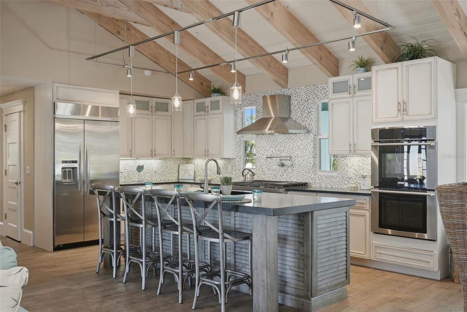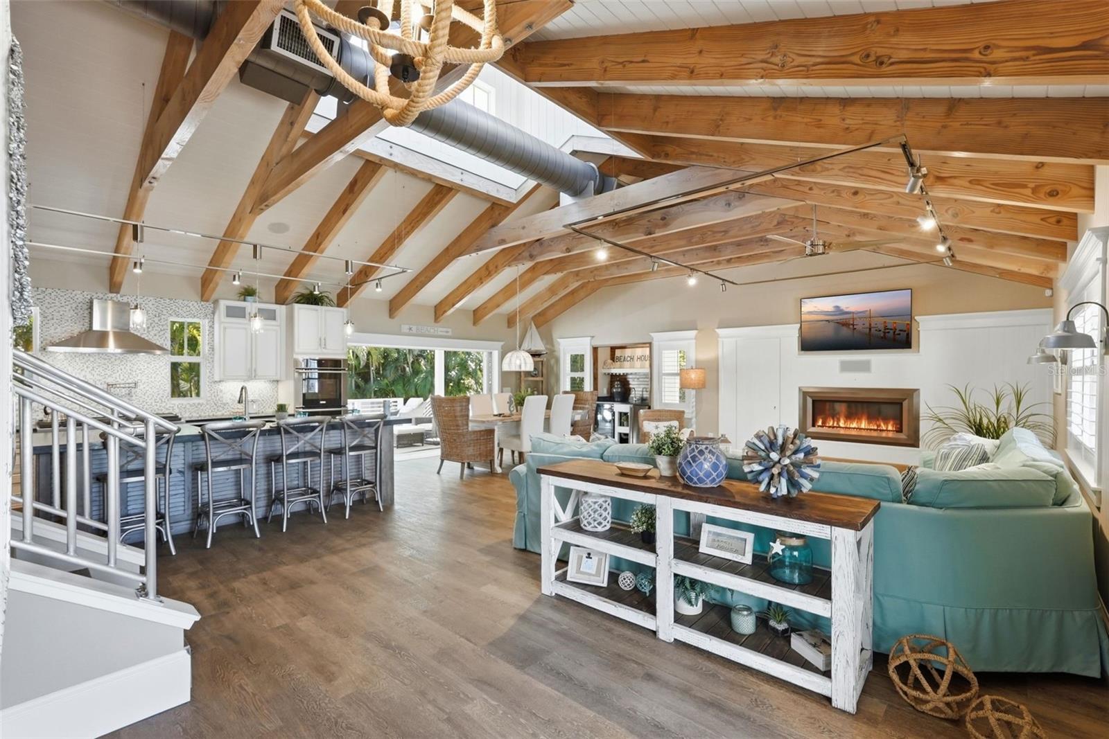 Positioned on a naturally elevated homesite for enhanced drainage and reduced flood exposure, this custom-built Anna Maria Island retreat delivers the perfect blend of luxury, flexibility, and proven investment potential. Offered turnkey furnished, the residence features 4 bedrooms, 3 full baths, and a layout designed for effortless full-time living or high-performing vacation use.The light-filled main living level showcases soaring cathedral ceilings, an open-concept great room, and retractable glass doors that create seamless indoor-outdoor living to the expansive deck. The chef's kitchen is built to impress with double ovens, commercial-size refrigerator, custom cabinetry, soapstone countertops, large island seating, and a brand-new ZLINE gas cooktop, all enhanced by suspended track lighting.Recent improvements include fresh interior and exterior paint, fresh sod and landscaping, an upgraded irrigation system, and a new pool heater and pump -- delivering true move-in-ready peace of mind.The private primary suite offers a balcony retreat, walk-in closet, soaking tub, and walk-in shower. Two additional upstairs guest rooms share a spacious bath, while the fourth bedroom on the lower level provides direct pool access and an additional full bath -- ideal for guests or multi-generational living.Outdoor living steals the show with a heated pool and spa, waterfall feature, gas firepit, built-in seating, and lush tropical landscaping for maximum privacy and year-round enjoyment.Zoned R1 with 30-night minimum rentals and a strong established rental history, this property offers exceptional flexibility for personal use, seasonal escapes, or income production. Located moments from the Gulf beaches, dining, and shopping of Anna Maria Island, this elevated, furnished coastal home is the total package.
