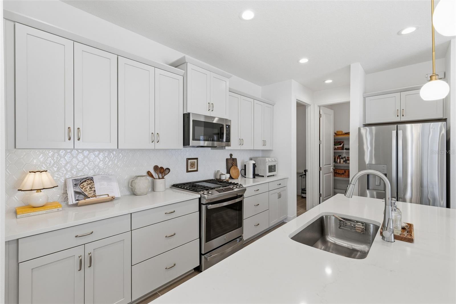 Welcome to this beautifully designed two-story home located in the highly desirable North River Ranch community of Parrish. Thoughtfully laid out for comfort and functionality, this spacious residence features a light and bright open-concept living area where the kitchen, dinette, and main living room flow seamlessly together. Large windows fill the space with natural light, creating an airy atmosphere ideal for both everyday living and entertaining. The kitchen offers generous counter space, modern cabinetry, a large island overlooking the living area, a walk-in pantry, and natural gas connections -- a desirable feature for cooking and efficiency. A dedicated laundry room and convenient half bath are also located on the main floor. The primary suite is privately situated on the first floor and includes an en-suite bathroom with dual vanities, a spacious walk-in closet, and a comfortable retreat-style layout. Upstairs, you'll find three additional bedrooms, a full bathroom, and a large loft space that provides flexibility for a second living area, home office, or media room. Step outside to enjoy the enclosed patio and fenced backyard, offering space to relax or entertain. Additional highlights include a two-car garage, extended driveway, and attractive front views overlooking water and mature trees that enhance the home's curb appeal. Residents of North River Ranch enjoy a wide range of community amenities, including multiple resort-style pools, clubhouses, parks, playgrounds, trails, recreation spaces, and even a neighborhood skate park, all designed to support an active and connected lifestyle. Conveniently located near shopping, dining, and major commuting routes, this move-in ready home offers modern living in one of Parrish's most sought-after master-planned communities.
