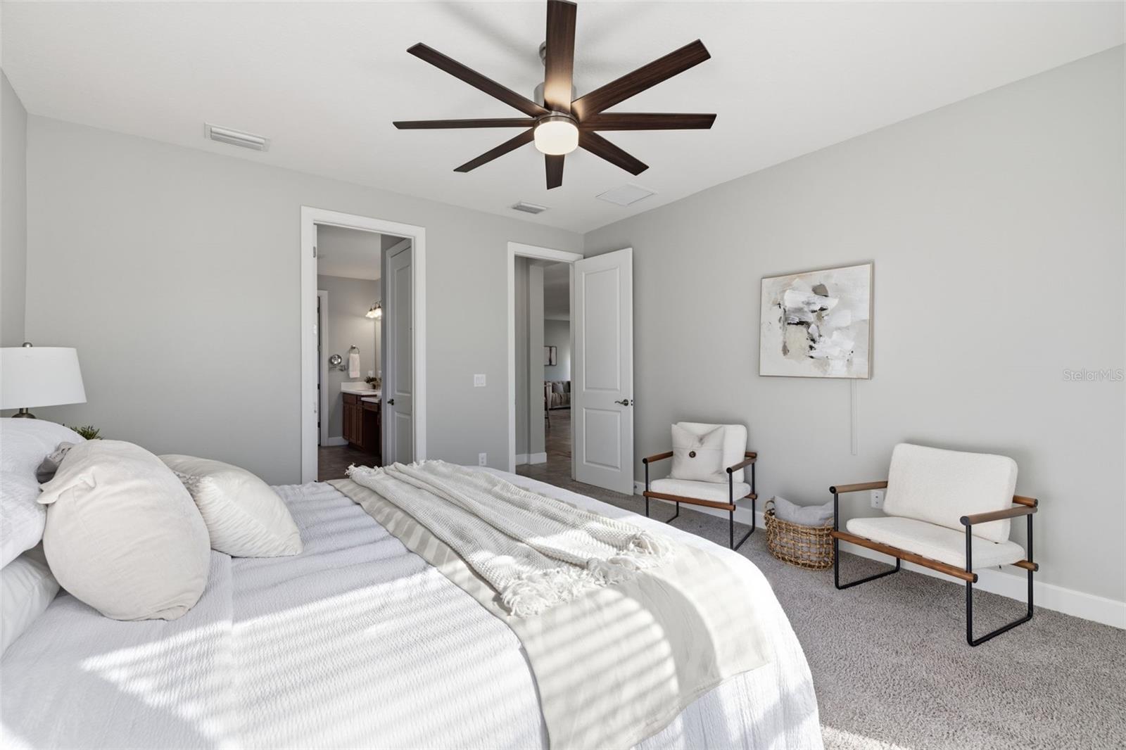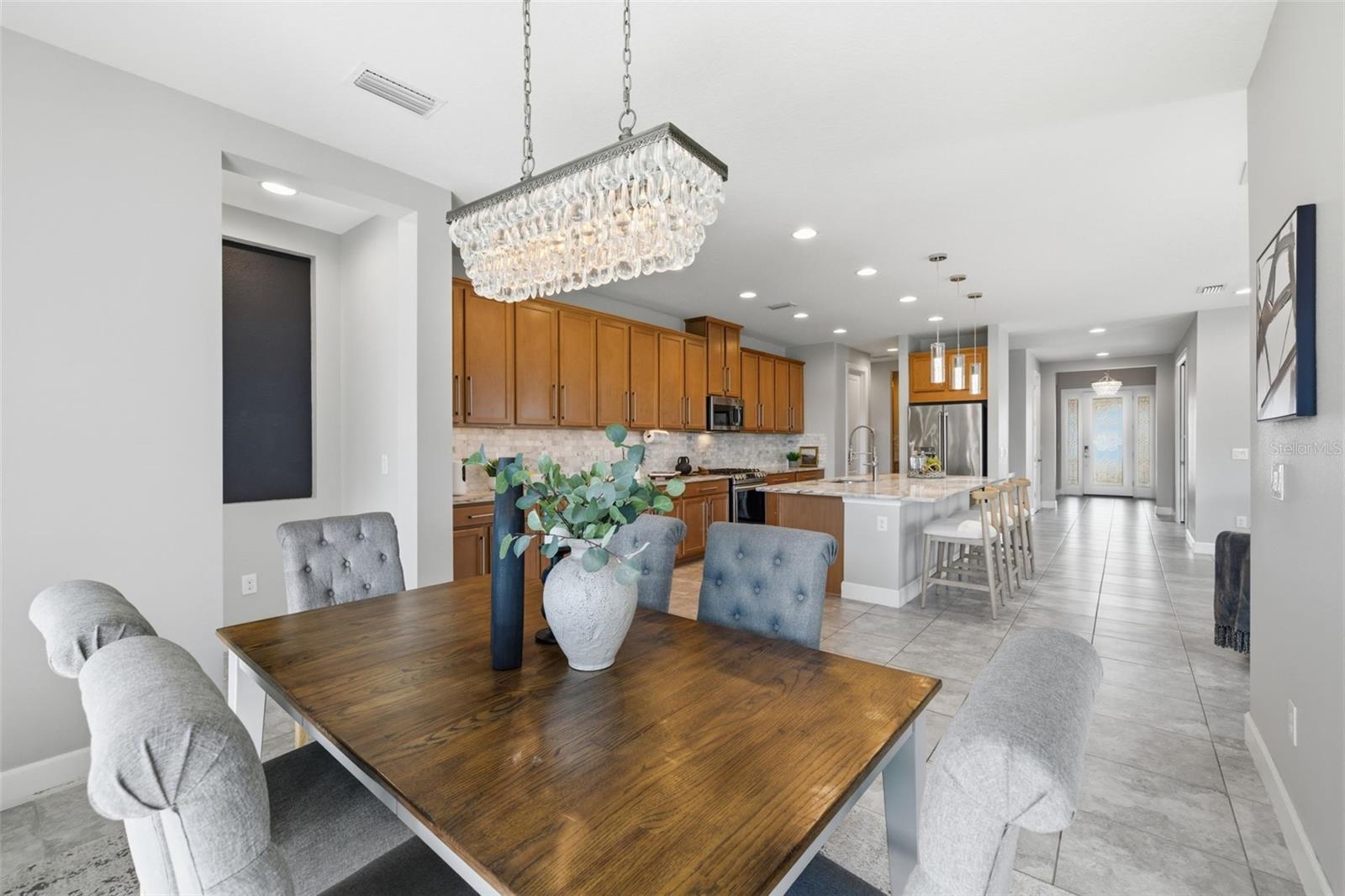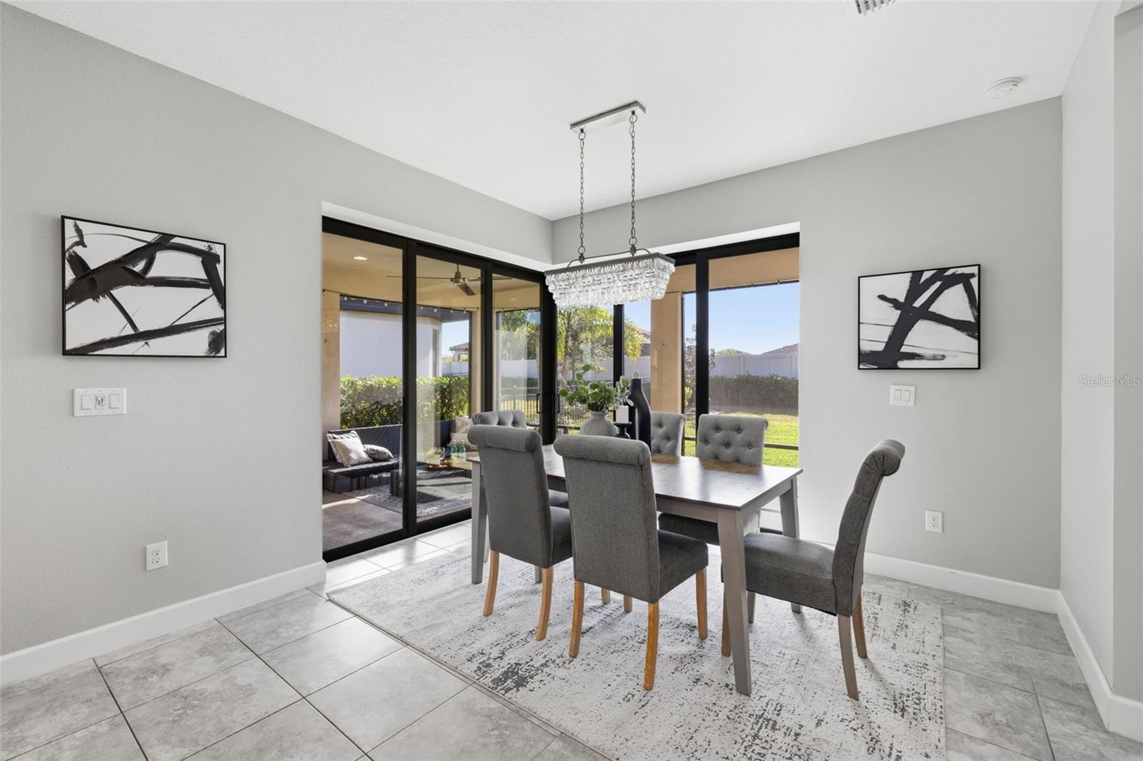 Come and enjoy luxury living at 5263 Morey Farms Loop in Palmetto, Florida, nestled within the highly sought-after community of Esplanade at Artisan Lakes. This is more than a home--it's a lifestyle. Built in 2020 and enhanced with extensive, high-end upgrades, this rarely available Santini (1 of ONLY 5 in the community) model offers 2,203 square feet of beautifully curated living space with three bedrooms and two and a half bathrooms. With the level of improvements throughout, it feels as pristine and refined as new construction. As you arrive, the expanded extra-wide driveway and oversized two-car garage immediately make an impression, complete with a stunning epoxy-coated floor that blends durability with elegance. Every detail has been thoughtfully considered to elevate both style and function. The gourmet kitchen is truly the heart of the home, featuring a stainless steel gas stove, 42-inch cabinetry, creamy quartz countertops, a generous oversized island, and all new appliances. A custom-designed pantry offers exceptional extended storage. The kitchen flows effortlessly into the open living and dining areas, creating a seamless environment ideal for entertaining or simply enjoying everyday life. Custom interior lighting fixtures illuminate the home beautifully, while ceiling fans in every bedroom ensure year-round comfort. Speaking of the Santini model, this floor plan offers a feature that truly sets it apart within Esplanade at Artisan Lakes. The two triple sliders in the dining area, along with the double slider in the main living space, fully retract to open the home completely to the lanai. When opened together, they dissolve the boundary between indoors and outdoors, transforming the entire living space into one expansive, flowing environment. Natural light pours in, fresh air circulates freely, and the home becomes an entertainer's dream--where the kitchen, dining room, living area, and screened lanai merge into one stunning indoor-outdoor retreat. This seamless integration is a signature design element unique to the Santini model and truly captures the essence of Florida living.