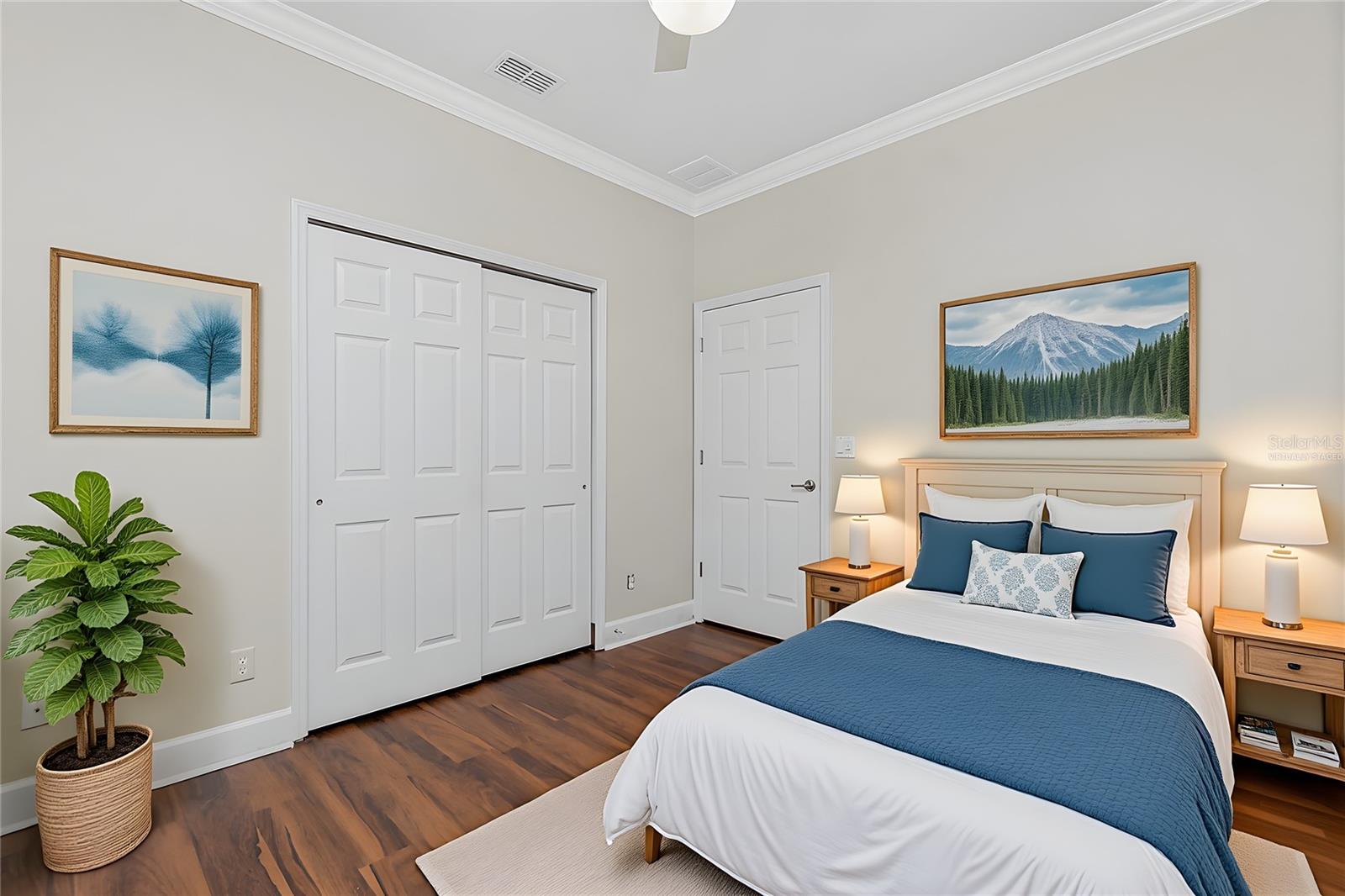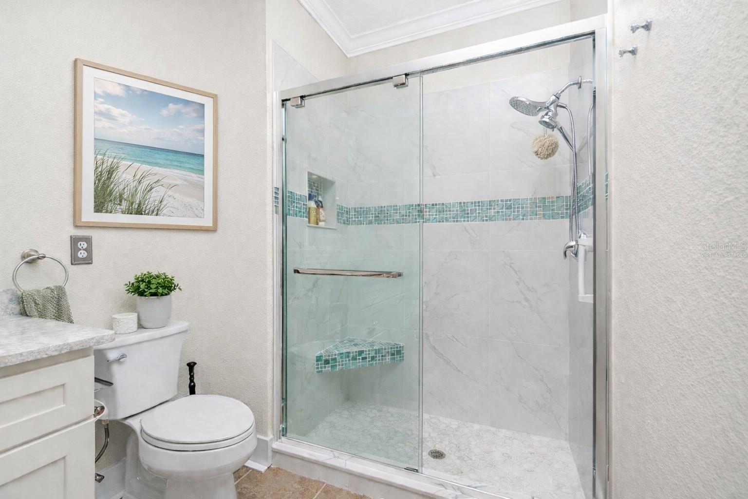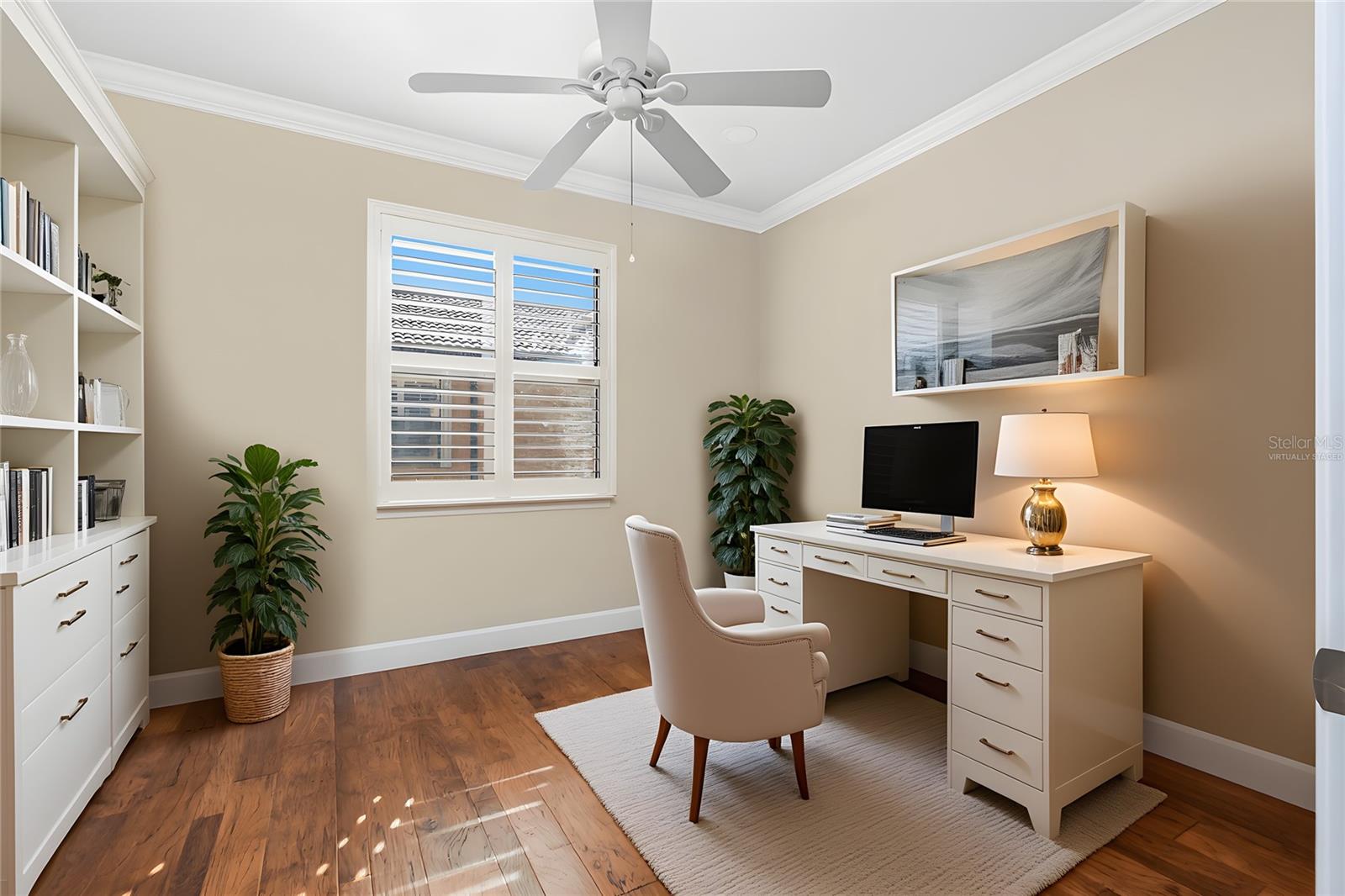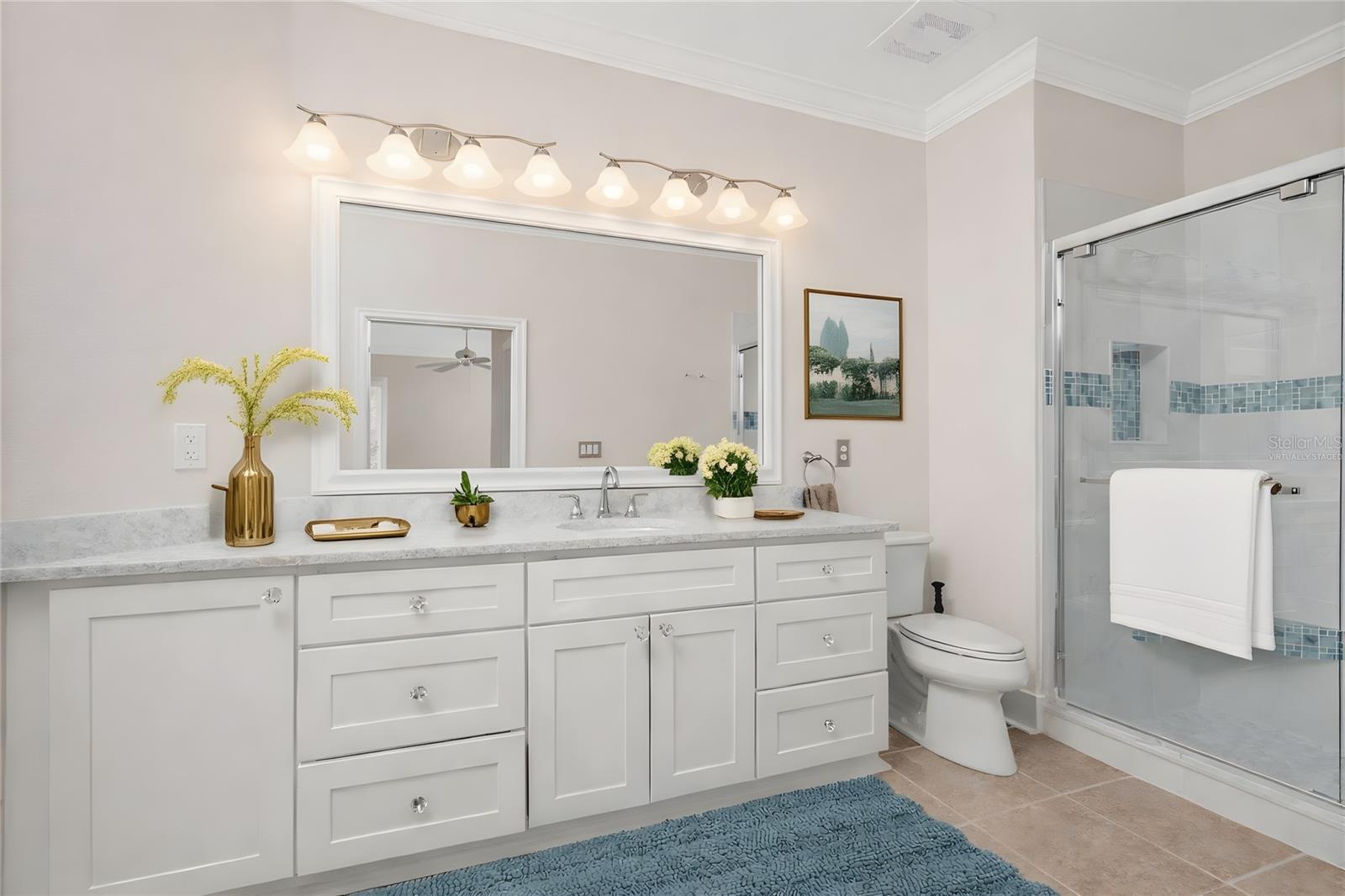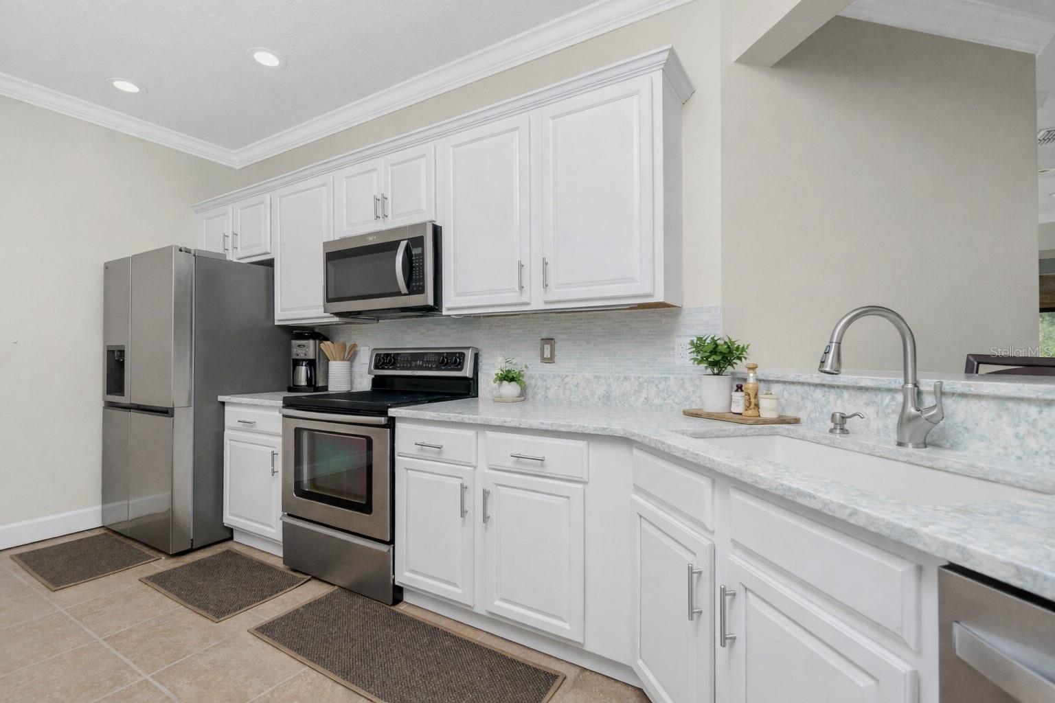 One or more photo(s) has been virtually staged. Welcome to 11162 Campazzo Dr!! You are going to fall in love with this light-filled and tastefully UPDATED end-unit villa with NO REAR NEIGHBORS, offering 2 bedrooms, 2 bathrooms, and a flexible den space. The home features a completely CARPET-FREE interior with a thoughtfully updated mix of flooring throughout -- all replaced within the last year. The main living areas and most rooms feature tile for easy maintenance, while the primary bedroom offers attractive Pergo laminate flooring. One secondary bedroom includes updated vinyl flooring, and the office/den showcases beautiful bamboo flooring, adding warmth and character to the space. The entire home has also been freshly painted, creating a clean, move-in ready feel. The beautifully refreshed kitchen showcases QUARTZ COUNTERTOPS, an oversized sink and upgraded faucet, and a sleek glass tile backsplash. All STAINLESS APPLIANCES are BRAND NEW except the range, including the French door refrigerator, adding both style and functionality. The spacious primary suite enjoys peaceful preserve views and features a stylishly renovated ensuite bath with dual quartz vanities and a large, bright tiled walk-in shower that creates a spa-inspired feel. The main living area is further enhanced by a cozy electric fireplace, perfect for adding ambiance and comfort. Step outside to the extended lanai and unwind while taking in the serene, unobstructed preserve backdrop -- perfect for morning coffee, evening relaxation, or entertaining guests. The space is further enhanced by convenient ELECTRIC HURRICANE SHADES, providing added protection, privacy, and year-round comfort.Within the last 2 years, NOTABLE UPGRADES include REMODELED PRIMARY BATHROOM, NEW QUARTZ KITCHEN COUNTERTOPS, UPGRADED KITCHEN SINK AND FAUCET, NEW GLASS TILE BACKSPLASH, NEW HOT WATER HEATER, NEW HVAC SYSTEM, FRESH INTERIOR PAINT, UPDATED FLOORING in select rooms, and the addition of GARAGE CEILING STORAGE RACKS for excellent organization and maximized overhead space and AC was replaced in 2022. The home has been meticulously maintained and shows true pride of ownership.The versatile den offers endless possibilities -- ideal for a home office, reading retreat, or guest space. Residents of this desirable 55+ community enjoy resort-style amenities including a heated pool and spa, resistance pool, fitness center, clubhouse, bocce, billiards, and more.