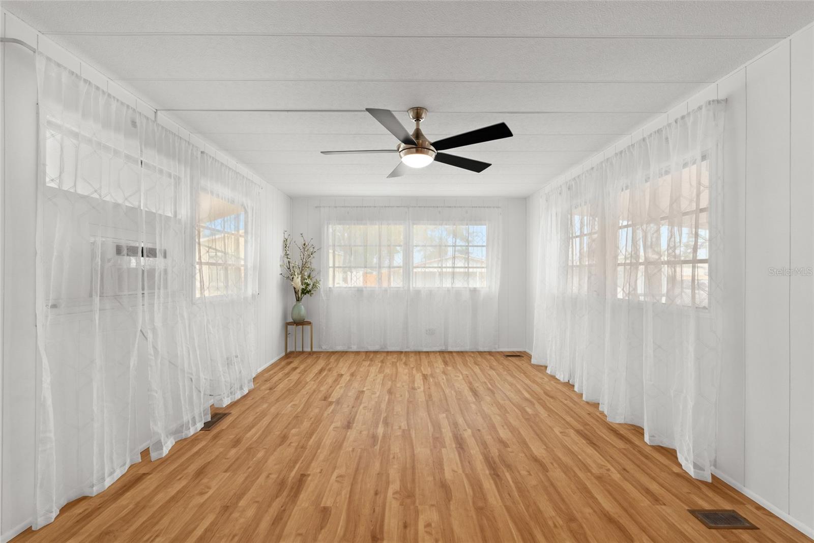 One or more photo(s) has been virtually staged. Welcome to 1012 50th Ave Plz West! Excellent opportunity to purchase this beautifully maintained, 2 bedroom / 1.5 bathroom home in a community with NO HOA, NO age restrictions, and land ownership - no lot rent! This mortgagable manufactured home features a conveniently split floor-plan and has newer light fixtures, creating a clean, updated feel throughout. Brand new luxury laminate flooring enhances the bright living space, while the functional kitchen and spacious layout provide everyday comfort. Bedroom 1 offers two closet spaces for ample storage. Bedroom 2 includes a closet/utility area with an attached half bath, adding flexibility and convenience. Ideally located near popular restaurants, beautiful Gulf beaches, and Sarasota International Airport, this home would be perfect as a primary residence, snowbird getaway, or investment opportunity!