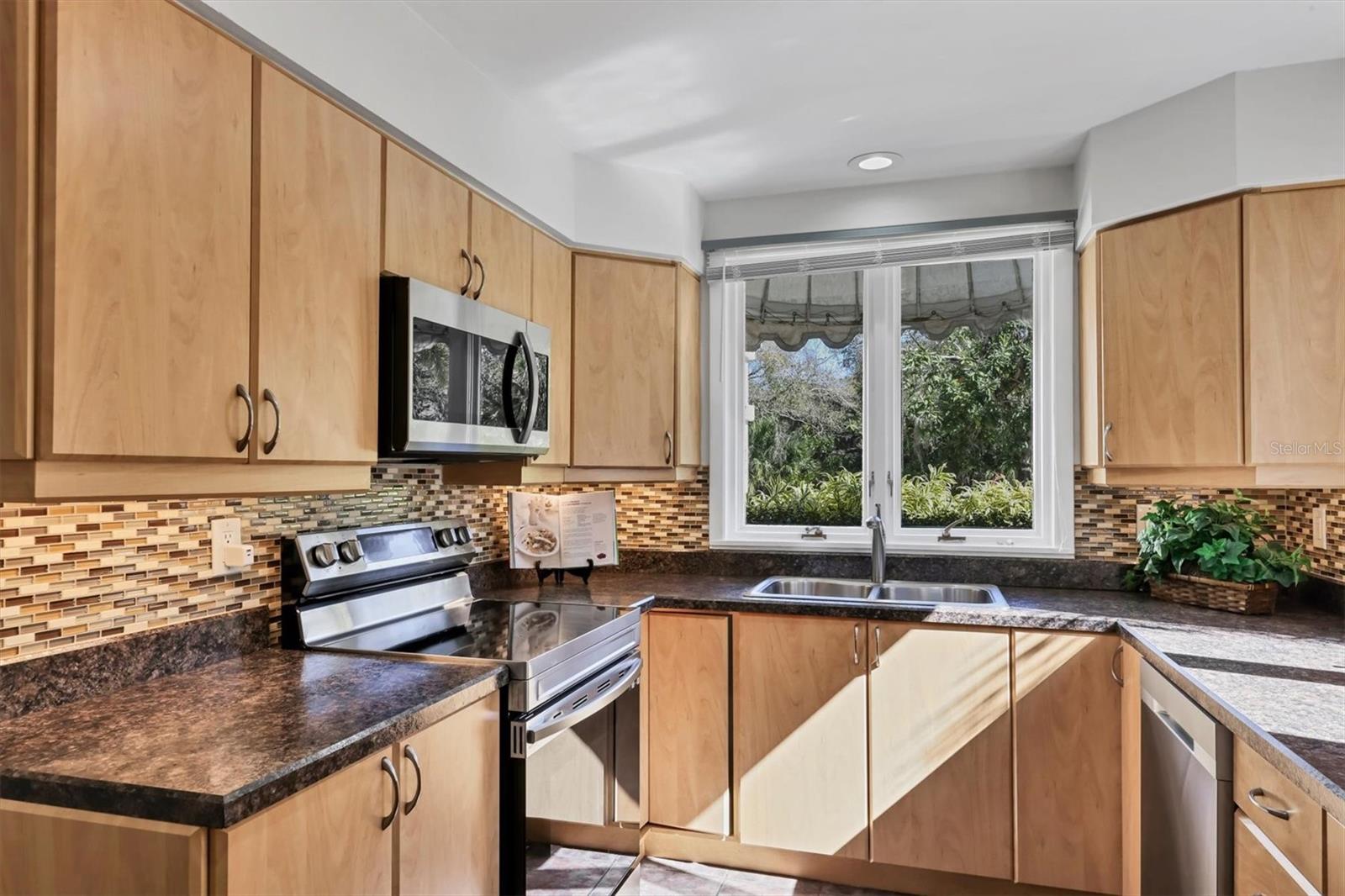 Discover your Zen space nestled amongst nature's finest preserve views, embracing peace and tranquility. 4540 Ascot Circle N ( 2BD/2BA + 1 car Garage) defines a cozy, low-maintenance home with an exceedingly spectacular location convenient to the shopping mecca of University Parkway corridor, 5 miles from downtown Sarasota with its cultural hub of theaters, restaurants, and beaches, and 5 miles east to Lakewood Ranch's recreational amenities, pickleball, golf, tennis, horseback riding, and cultural events. As a new owner, you will benefit from the professionally designed finishes and furnishings, which are included and remain with the property. The floor plan resembles the letter "H," which filters the interior with an abundance of natural light. The Primary bedroom suite is located on the left. At the heart of the home is the living area, with broad floor-to-ceiling windows that embrace stunning preserve views, and an oversized screened lanai that invites sitting with a book, sipping wine, or chatting with family and friends. The second bedroom on the right side of the home offers a Murphy bed for guests, along with seating, making it a private space for watching TV or sorting your financial investments. The adjacent closet offers ample storage space for filing personal records or family memoirs. The U-shaped kitchen is a chef's delight for easy access between the range, refrigerator, and meal prep on the broad counters. The kitchen overlooks the courtyard, which can be cultivated as an herb garden. There is an additional oversized storage room, plus the laundry is inside. Notably, the quarterly fees include: Roof, Exterior Building Maintenance, Exterior Painting, Exterior Insurance, Exterior Grounds Maintenance, Pest control, Reserves, and Manager. The owner is responsible for the home's interior exclusively. Amazing Value and Benefits for the owner. Now is the time to call for your private showing.