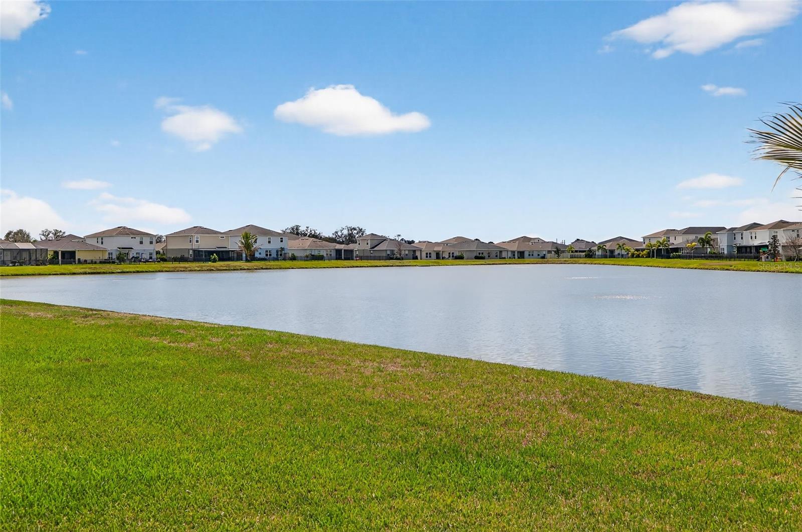 WHY WAIT months for new construction when this beautifully upgraded 3-bedroom + office (optional 4th bedroom) home is available now? Located in one of Tampa Bay's fastest-growing areas, this rare Seagate model offers modern design, energy efficiency, and peaceful water views. Step inside to soaring 12-foot ceilings, oversized tile flooring, and an open concept layout designed for comfortable everyday living and effortless entertaining. The SPACIOUS KITCHEN features solid wood cabinetry, granite countertops, a large center island, and an oversized walk-in pantry, with both casual and formal dining spaces nearby. The SPLIT BEDROOM FLOOR PLAN provides privacy, with the owner's suite overlooking the water and featuring a generous ensuite bath. Two additional bedrooms and a dedicated office provide flexibility for guests, remote work, or a fourth bedroom. This home offers UPGRADES buyers love but rarely find already installed in new builds, including coastal plantation shutters, smart home technology, 6-inch baseboards, built-in floor outlets, reverse osmosis water system, and a covered lanai pre-wired for an outdoor kitchen. ENERGY EFFICIENCY is another standout feature with 18 solar panels that reduce monthly energy costs by approximately 70%, helping keep utility bills low. Located just minutes from shopping, restaurants, medical facilities, a new hospital, and the VA hospital, with convenient access to major highways and the Gulf Coast beaches. Residents enjoy a welcoming neighborhood with a community pool, playground, and scenic walking and biking paths, and this home is ideally positioned just one block from the community amenities, offering the convenience of an easy stroll while still enjoying the peace and privacy of being tucked away from the activity. If you are looking for a move-in-ready Florida home with modern upgrades, WATER VIEWS, and lower energy costs, this one is worth a closer look.