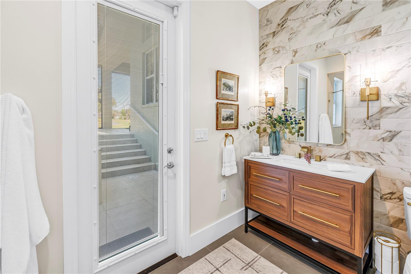 Exterior: Garden, Lighting, Private Yard, Shade Shutter(s), Sidewalk, Sliding Doors
