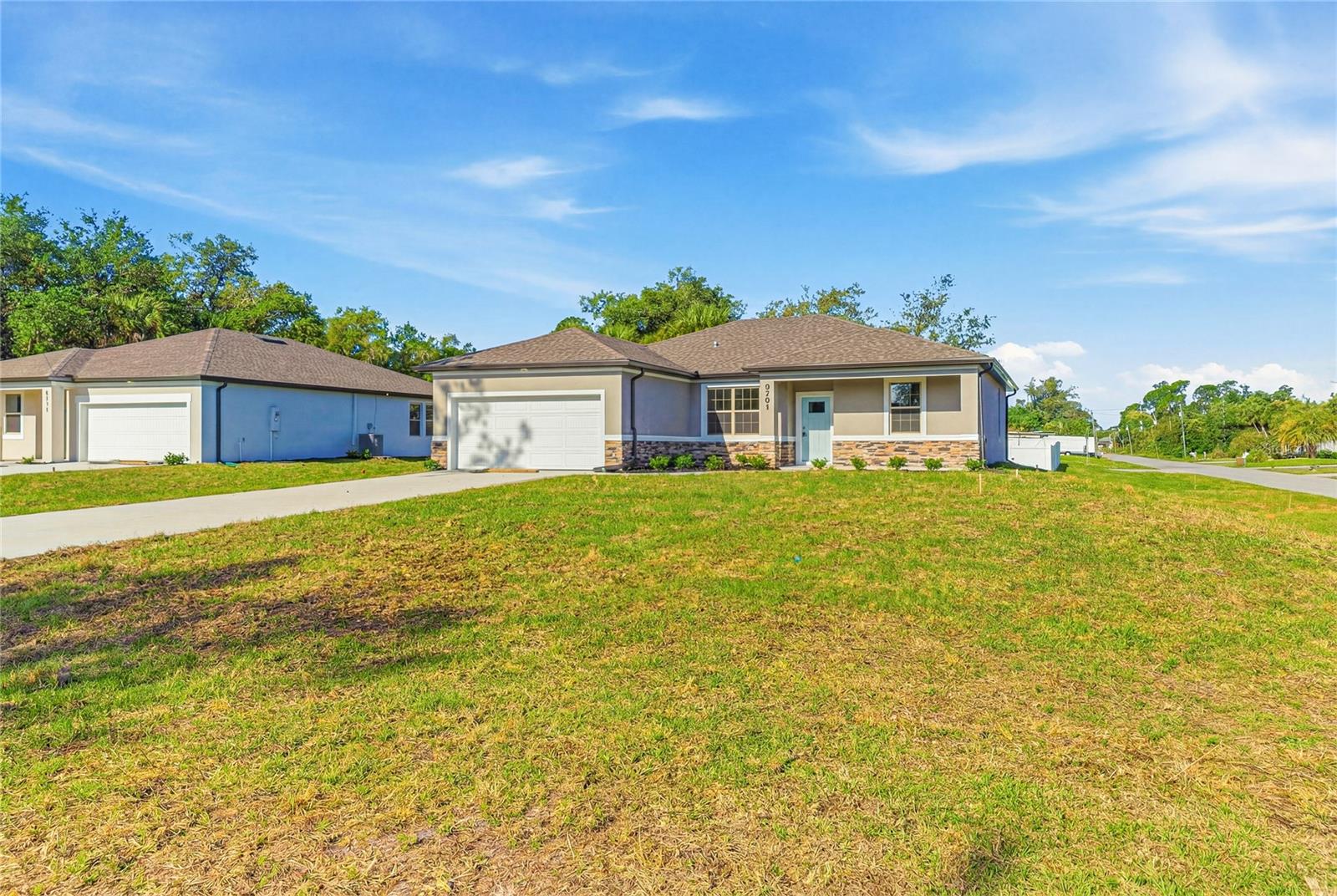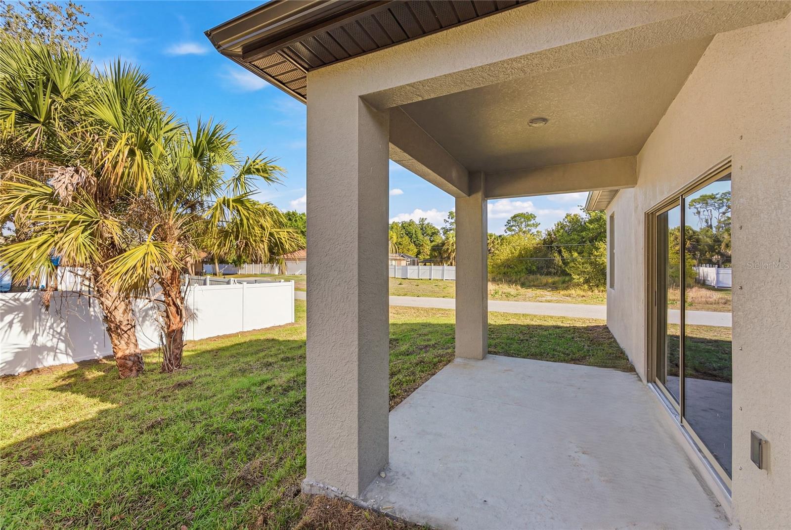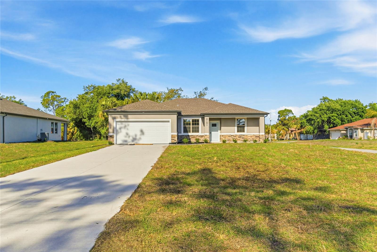 Great price with luxury features and ready now! A newly constructed home with city water and septic system in North Port, with no HOA fees! Great location for quick access to schools, the city center, medical conveniences, parks and the highway. North Salford is not in a high traffic area and only has side streets. This affordable new home is ready for you and is just what you've been looking for! This home has 9'4" tall ceilings, a nice and open layout with a versatile floor plan. The house features 4 bedrooms, 2 full bathrooms, dining room, a living room, an open kitchen and a 2-car garage with 1810 square feet of living space. The living space is well utilized with high ceilings and many windows providing natural light. The interior features will provide you with the quality and luxury you were looking for in your new home. This home has a split floor plan with the primary suite on one side of the home and the guest bedrooms on the other. The primary bedroom has a tray ceiling and large windows that let in natural light. You'll also enjoy a resort-style bathroom with a spacious walk-in shower with floor-to-ceiling tiled walls and a glass enclosure. It also features a linen closet, double vanity and a large walk-in closet. The living room features large windows and several LED fixtures providing plenty of light with access to the covered lanai. The living room is open to the kitchen, where you'll find a huge center island with extra seating for casual dining and plenty of cabinets. The kitchen features stainless steel appliances, Shaker-style cabinets with crown molding, decorative hardware, subway tile backsplash and granite countertops. The dining room is located at the front of the house, with large windows allowing for plenty of natural light. The home includes luxury vinyl plank flooring in the main living areas and bathrooms for durability and comfort. You'll love these floors! They are easy to maintain and offer a modern design, perfect for new homes. Other features include the same beautiful Shaker-style cabinets with hardware and granite countertops in the bathrooms, 5-inch baseboards, a garage door opener, gutters on the exterior, R38 insulation, a 16 SEER HVAC and much more. Visit our model center and compare the features and quality with other homes and you'll see the difference. We make buying easy for you!