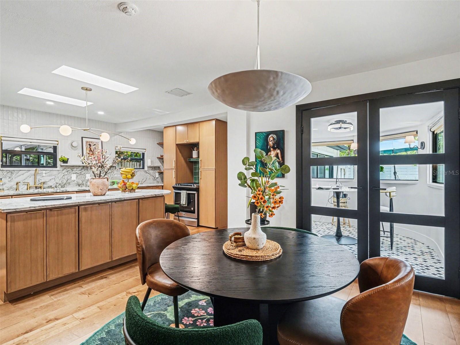 Step into a home that redefines privacy, design, and sophistication. Priced at $870,000, this fully renovated 3-bedroom, 3-bathroom residence with a dedicated office and pool offers a rare courtyard-style layout where indoor and outdoor living seamlessly intertwine. Enter through a private gated front courtyard, and you're immediately welcomed by a heated pool, custom pavers, and a striking outdoor wood-burning fireplace. Cement planters with cushioned seating surround the pool, creating a relaxed resort-style setting, while a lemon tree and foliage add a natural, tranquil touch to the courtyard oasis. This is an intimate, resort-style setting designed for both private entertaining and everyday living. The oversized screened lanai extends your living space even further, creating multiple areas to relax and unwind in complete privacy.Inside, modern upgrades marry timeless design across a beautifully connected living and kitchen layout. The living room is anchored by a sleek electric fireplace and a mounted picture frame TV against a green tile backsplash, creating a refined focal point that feels both comfortable and elegant. The kitchen is equally impressive, featuring quartzite countertops, floor-to-ceiling custom cabinetry, and a pot filler above the gas stove. Seamlessly integrated appliances, including a refrigerator concealed within matching cabinetry, enhance the clean, elevated aesthetic. A hidden "secret" door within the kitchen leads to a spacious laundry room and full bath, adding practicality while introducing a subtle element of surprise. The private office is another standout feature, finished with marble flooring and framed by large windows overlooking the courtyard and pool. Abundant natural light and serene views create an inspiring workspace, while French doors provide privacy when needed.New engineered wood flooring flows throughout the home, complemented by updated lighting and new hurricane impact windows and doors for peace of mind.This home offers the rare advantage of two primary suites, each refined in every detail. The main suite is a true retreat, featuring a private dry bar with a mini fridge, a fully customized 7x17 walk-in closet, and a spa-inspired bath with a soaking tub, expansive walk-in shower, heated towel rack, smart toilet, and designer finishes in warm, sophisticated tones. The second suite provides its own spacious bath and beautifully finished walk-in shower, ideal for guests or multigenerational living. The third bedroom has beautiful views of the pool through the sliding glass doors.Additional upgrades include a whole-home water filtration system, split A/C units for enhanced cooling, an attic fan, and new fencing surrounding the courtyard. Parking is abundant with a circular driveway and additional space alongside the fence, comfortably accommodating five or more vehicles. A separate outdoor shed provides convenient storage for lawn and pool equipment. Located in a quiet neighborhood just a few streets from the water, this home is a rare find in today's market, where every detail has been carefully curated for luxury, comfort, and style. Furnishing negotiable!