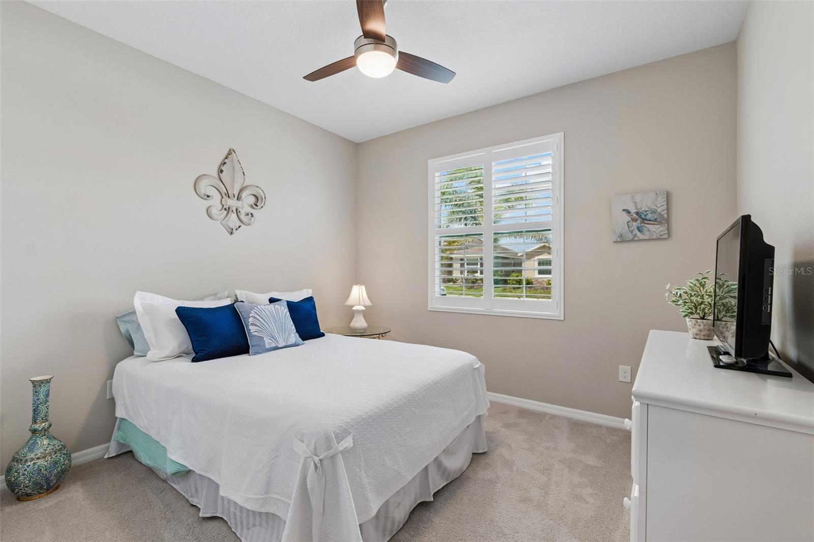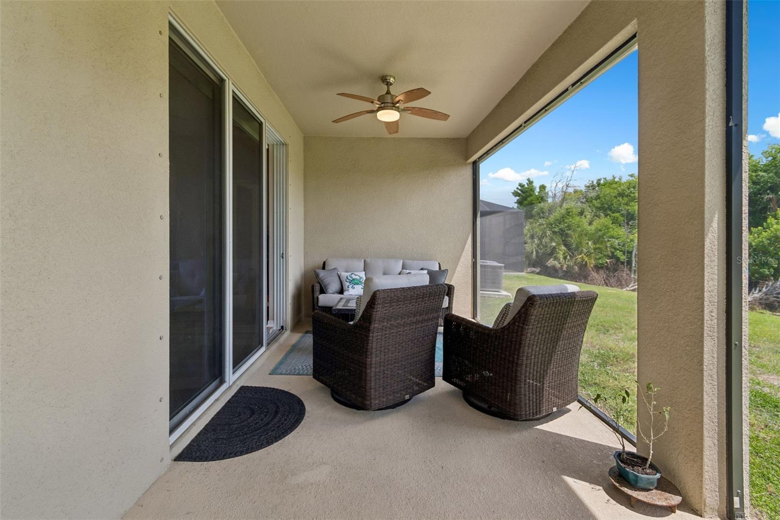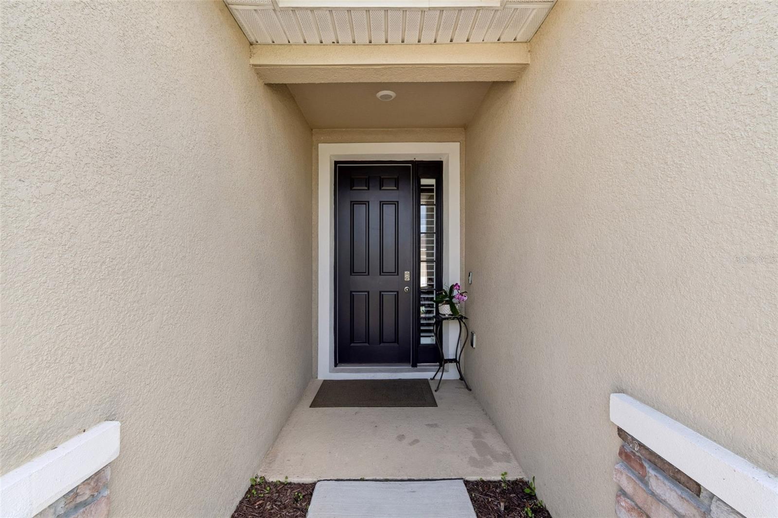 Exterior: Hurricane Shutters, Rain Gutters, Sidewalk, Sliding Doors