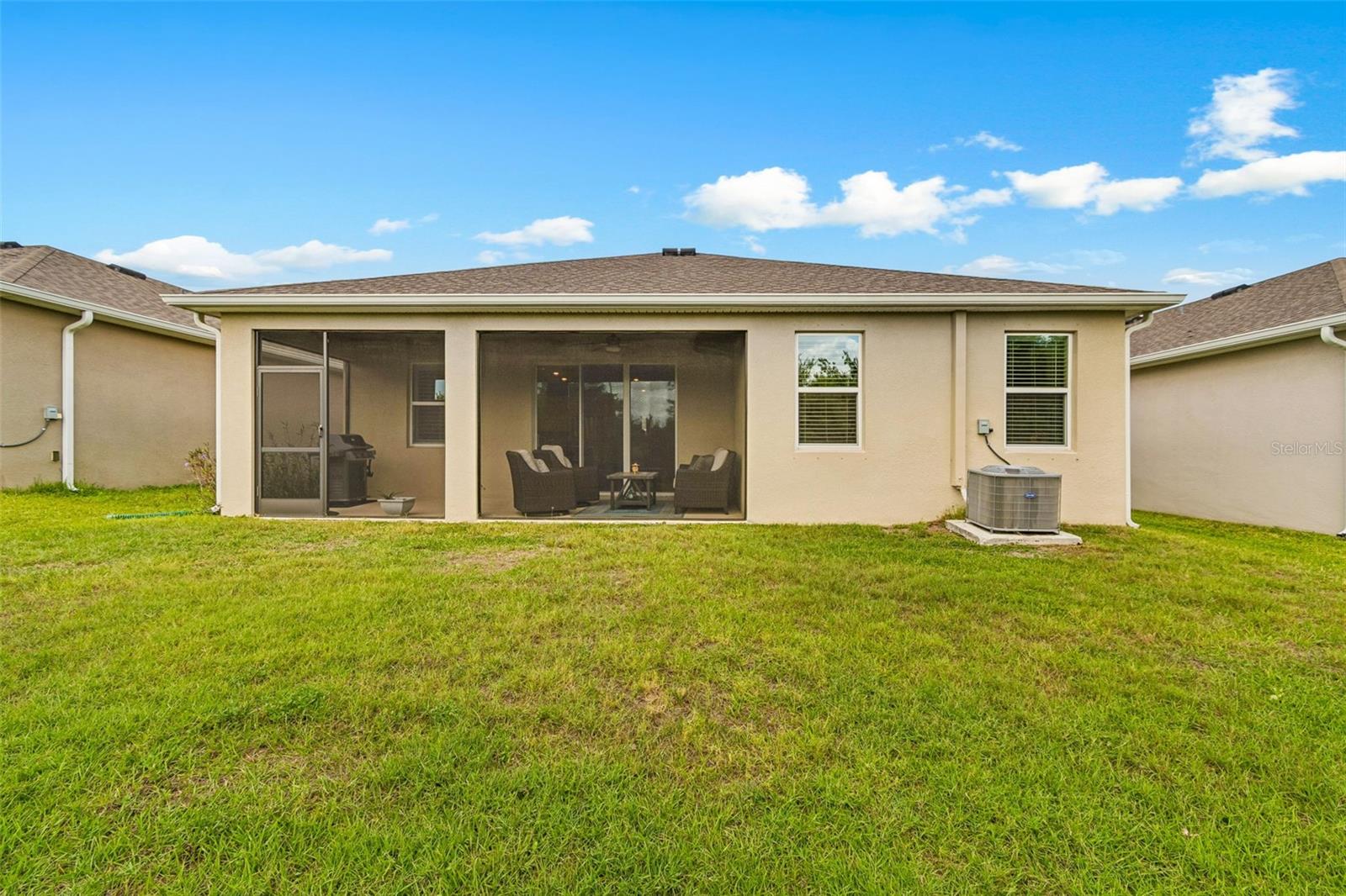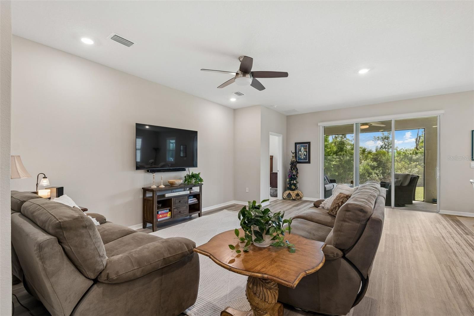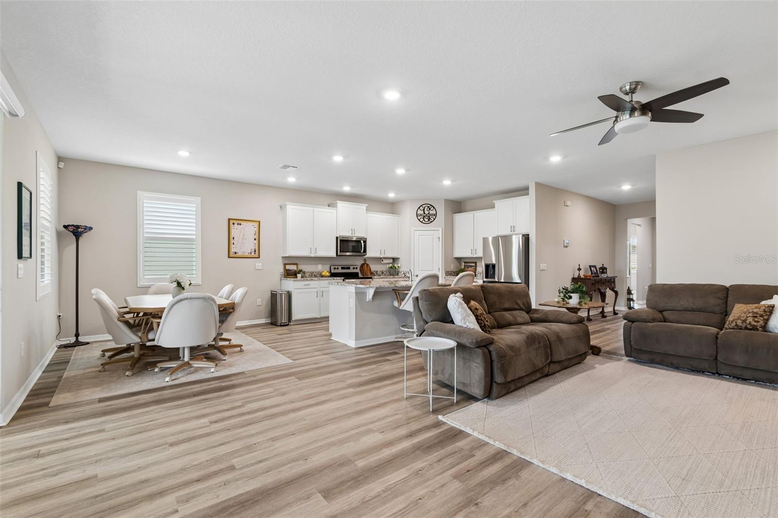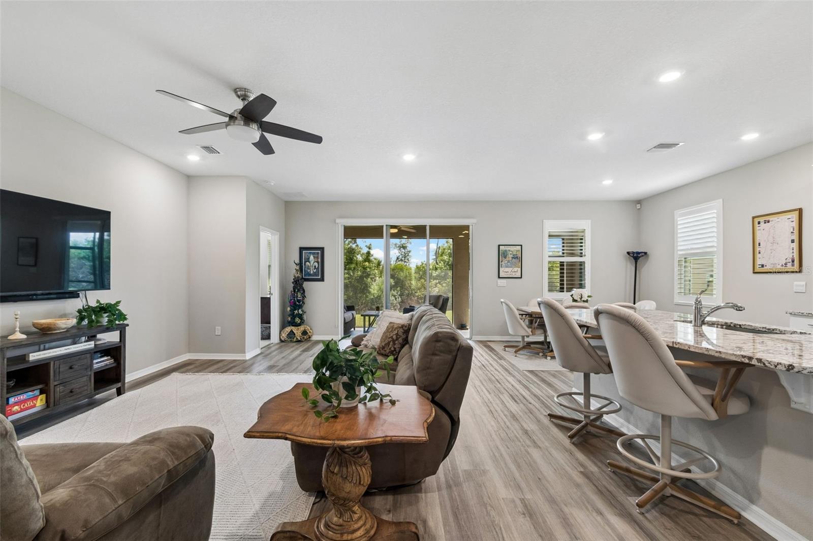 Step into comfort and style with this beautiful 4-bedroom, 2.5-bath all-concrete-block-constructed home in the sought-after Bella Lago community. Built in 2022, this home offers 2,043 square feet of easy living space designed for everyday enjoyment and entertaining. The bright and open floor plan features updated luxury vinyl plank flooring, added plantation shutters, and a gorgeous kitchen with all-white cabinets and granite countertops--a perfect place to gather with family and friends. A whole-house water filtration system and whole-home surge protection add extra peace of mind and convenience, while the screened lanai invites you to relax and take in peaceful views of the preserve, where nature is right in your backyard. The primary suite is a true retreat with a tray ceiling, his-and-hers walk-in closets, and a spacious ensuite bathroom complete with dual sinks, an extra-large vanity, garden tub, separate shower, and private water closet. The garage has been updated with epoxy floors and two hanging storage racks as well. Residents of Bella Lago enjoy access to two resort-style pools, a fitness center, a playground, and a dog park. Come see why this home is truly turnkey and the perfect place to start your next chapter!