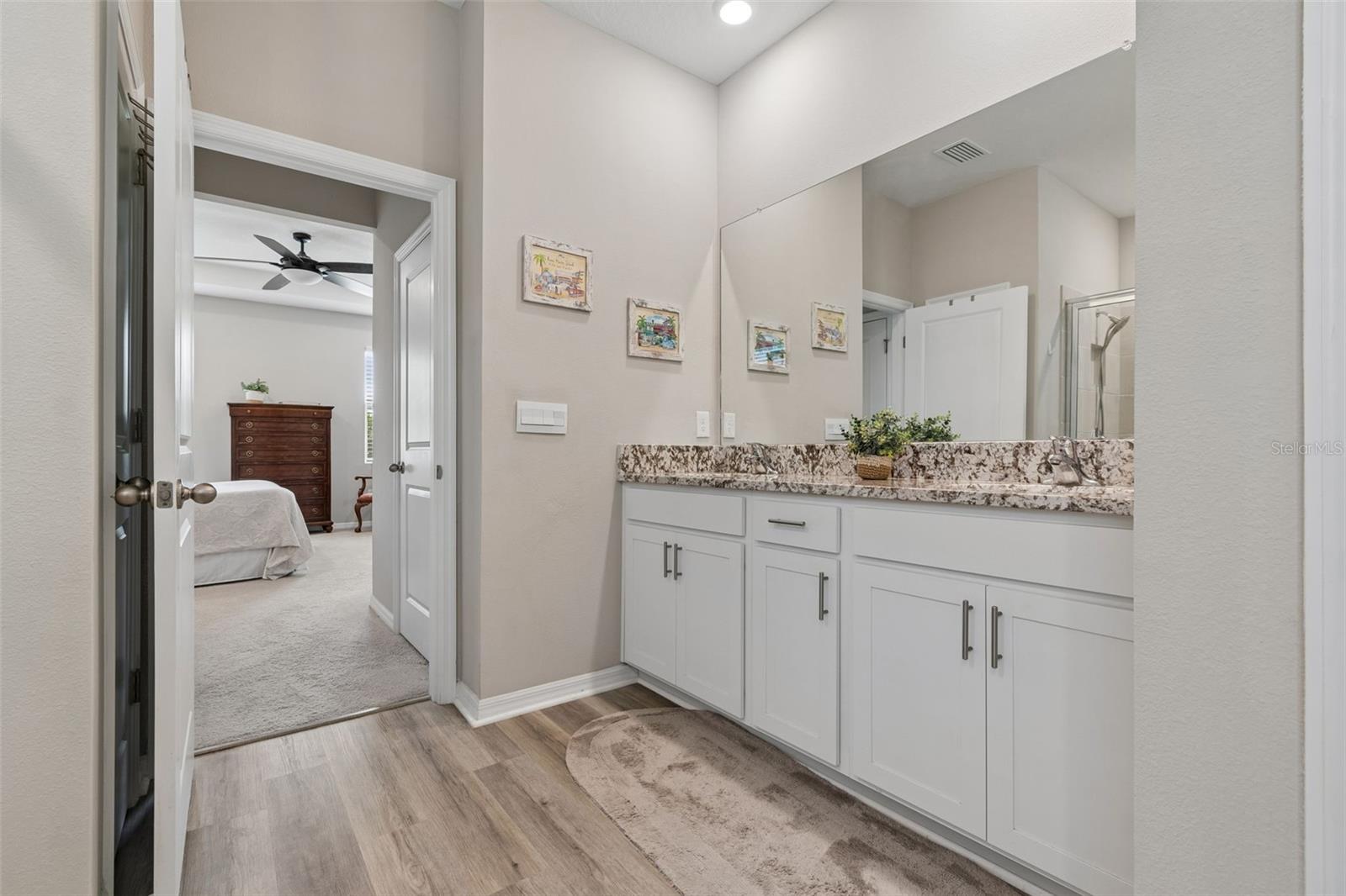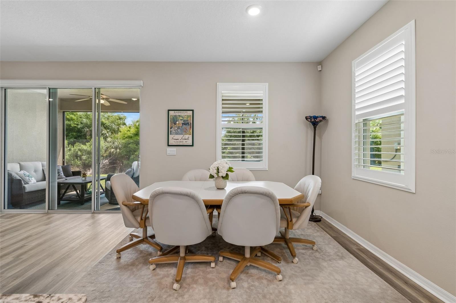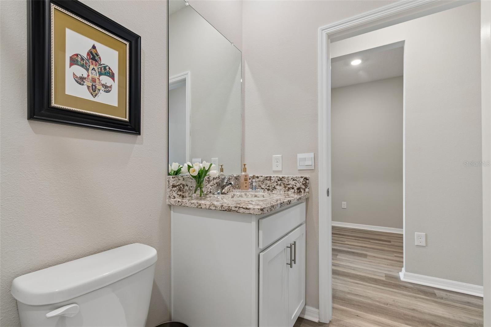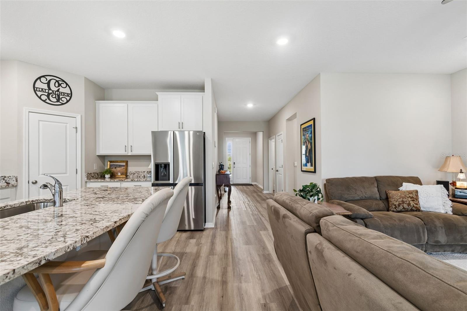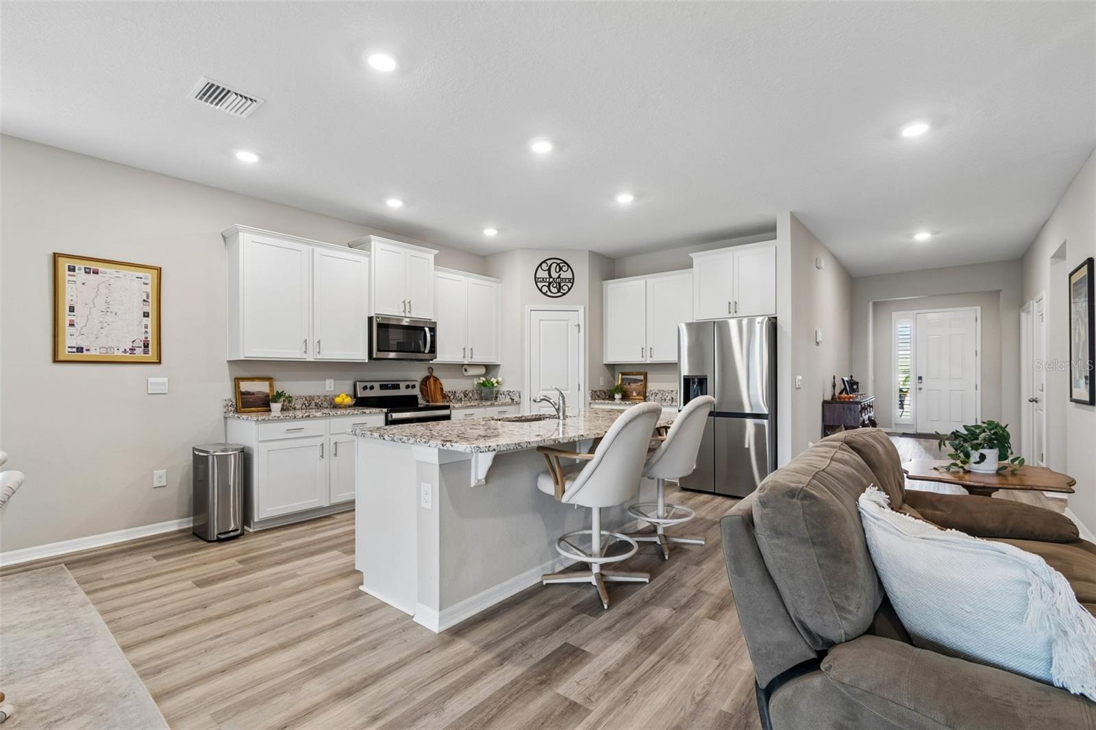 Step into comfort and style with this beautiful 4-bedroom, 2.5-bath all-concrete-block-constructed home in the sought-after Bella Lago community. Built in 2022, this home offers 2,043 square feet of easy living space designed for everyday enjoyment and entertaining. The bright and open floor plan features updated luxury vinyl plank flooring, added plantation shutters, and a gorgeous kitchen with all-white cabinets and granite countertops--a perfect place to gather with family and friends. A whole-house water filtration system and whole-home surge protection add extra peace of mind and convenience, while the screened lanai invites you to relax and take in peaceful views of the preserve, where nature is right in your backyard. The primary suite is a true retreat with a tray ceiling, his-and-hers walk-in closets, and a spacious ensuite bathroom complete with dual sinks, an extra-large vanity, garden tub, separate shower, and private water closet. The garage has been updated with epoxy floors and two hanging storage racks as well. Residents of Bella Lago enjoy access to two resort-style pools, a fitness center, a playground, and a dog park. Come see why this home is truly turnkey and the perfect place to start your next chapter!