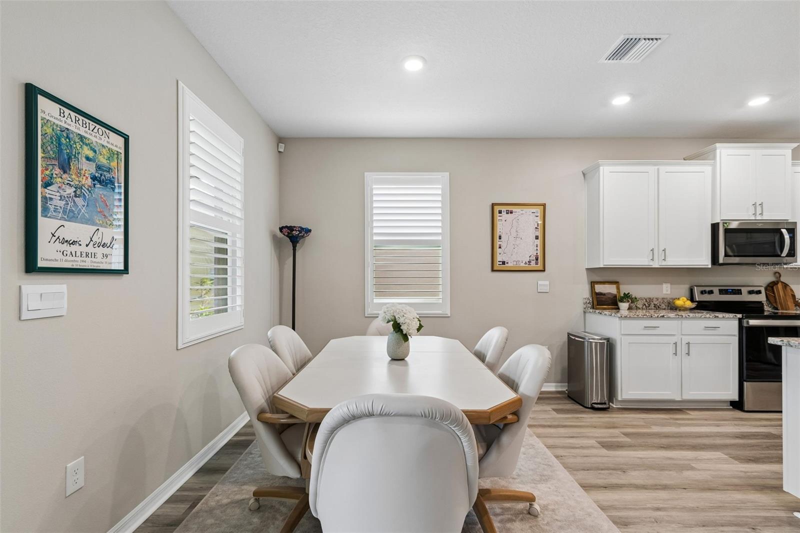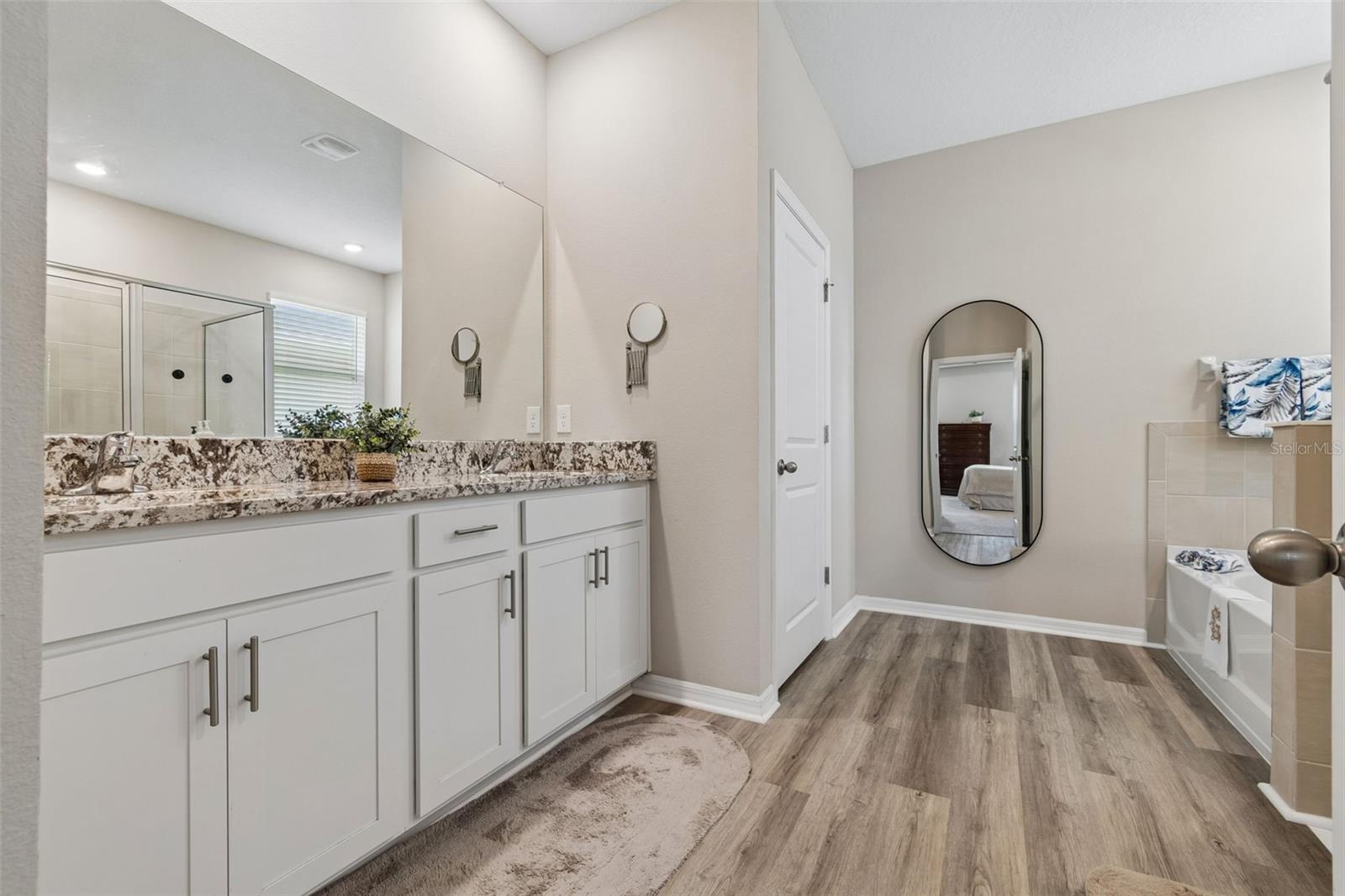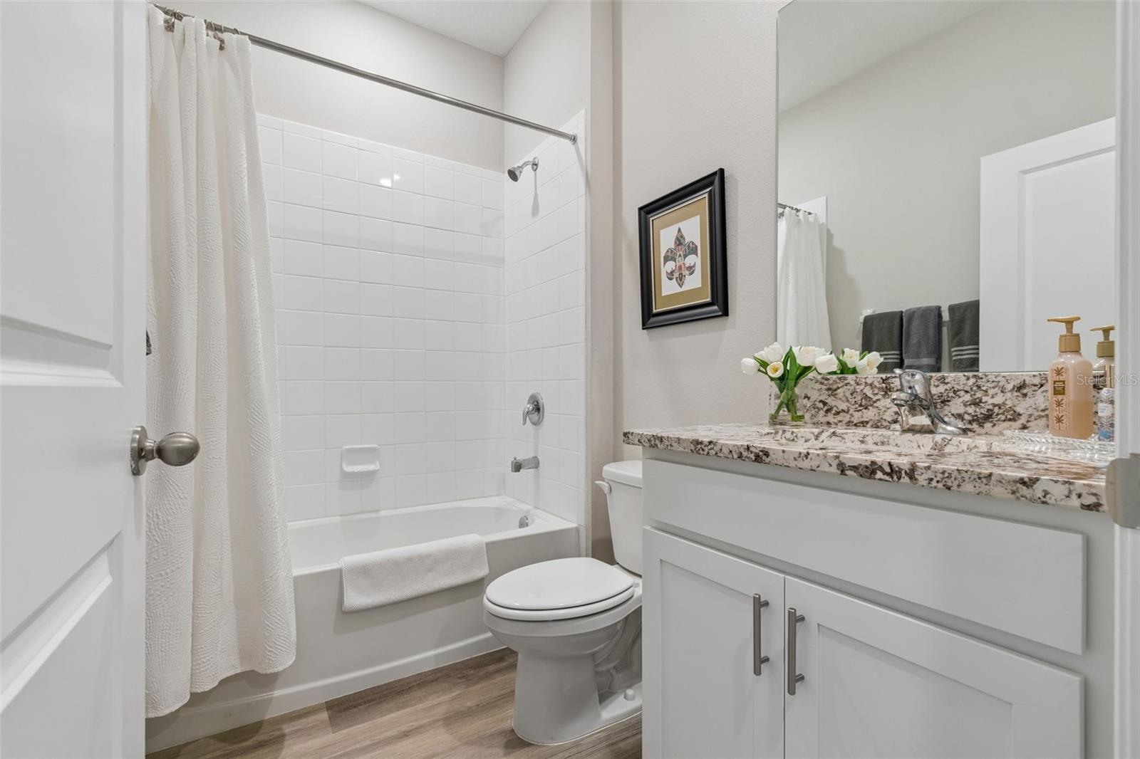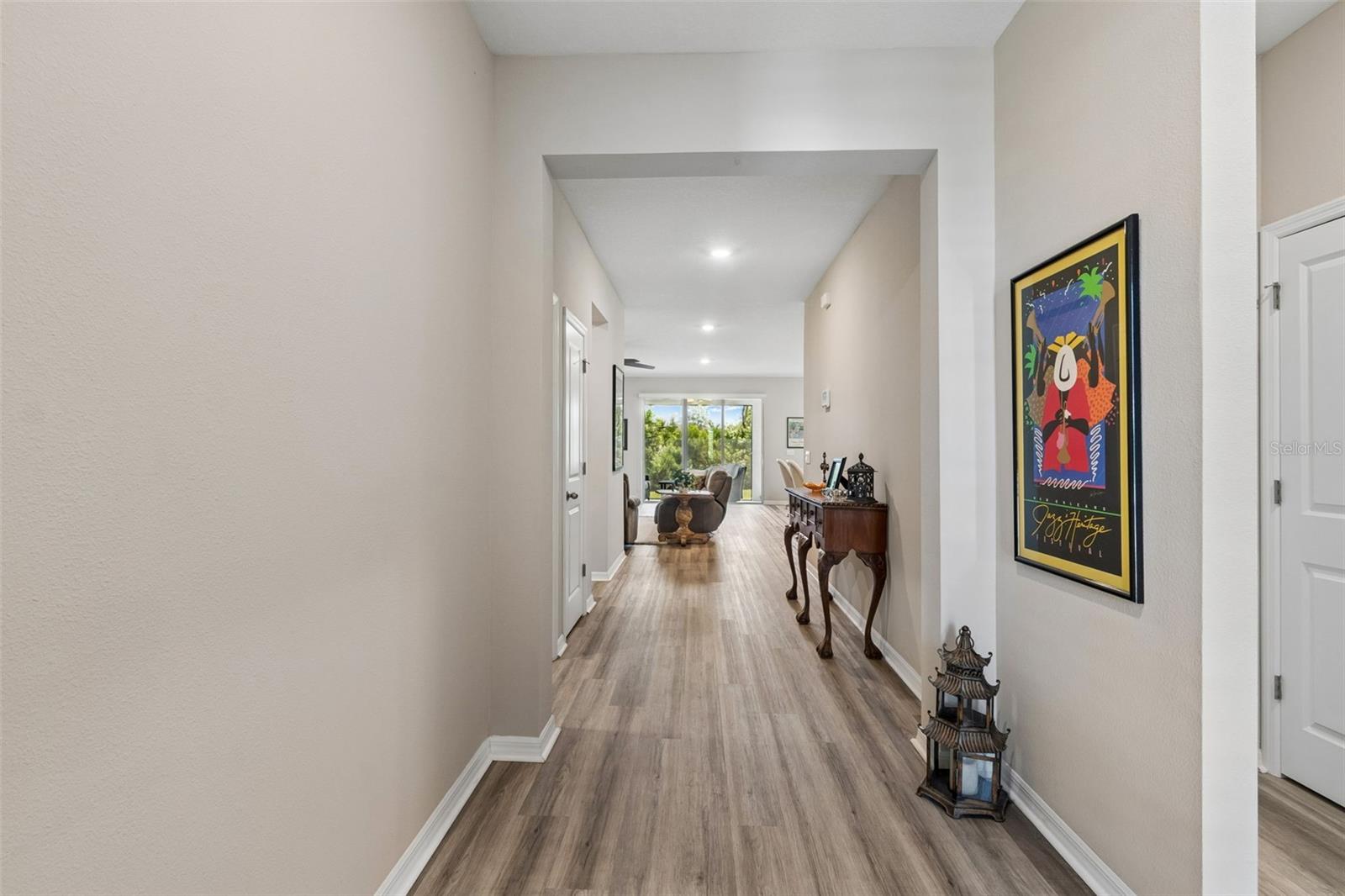 Step into comfort and style with this beautiful 4-bedroom, 2.5-bath all-concrete-block-constructed home in the sought-after Bella Lago community. Built in 2022, this home offers 2,043 square feet of easy living space designed for everyday enjoyment and entertaining. The bright and open floor plan features updated luxury vinyl plank flooring, added plantation shutters, and a gorgeous kitchen with all-white cabinets and granite countertops--a perfect place to gather with family and friends. A whole-house water filtration system and whole-home surge protection add extra peace of mind and convenience, while the screened lanai invites you to relax and take in peaceful views of the preserve, where nature is right in your backyard. The primary suite is a true retreat with a tray ceiling, his-and-hers walk-in closets, and a spacious ensuite bathroom complete with dual sinks, an extra-large vanity, garden tub, separate shower, and private water closet. The garage has been updated with epoxy floors and two hanging storage racks as well. Residents of Bella Lago enjoy access to two resort-style pools, a fitness center, a playground, and a dog park. Come see why this home is truly turnkey and the perfect place to start your next chapter!