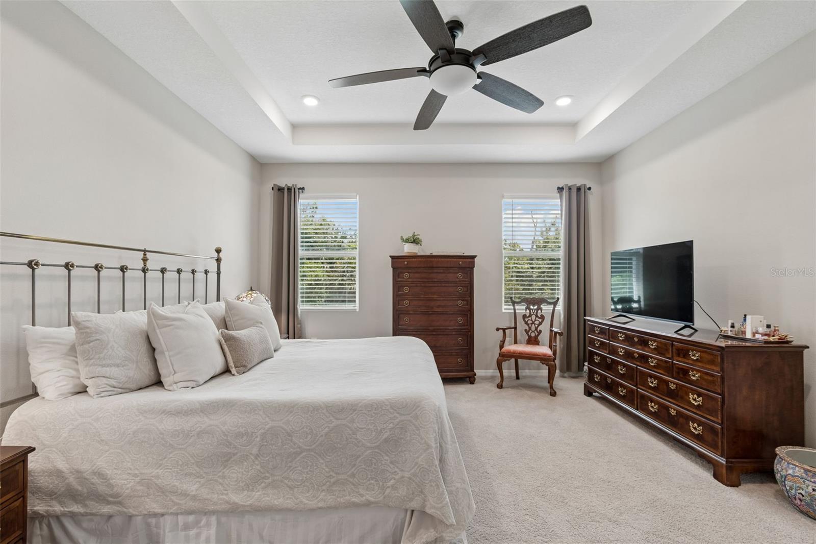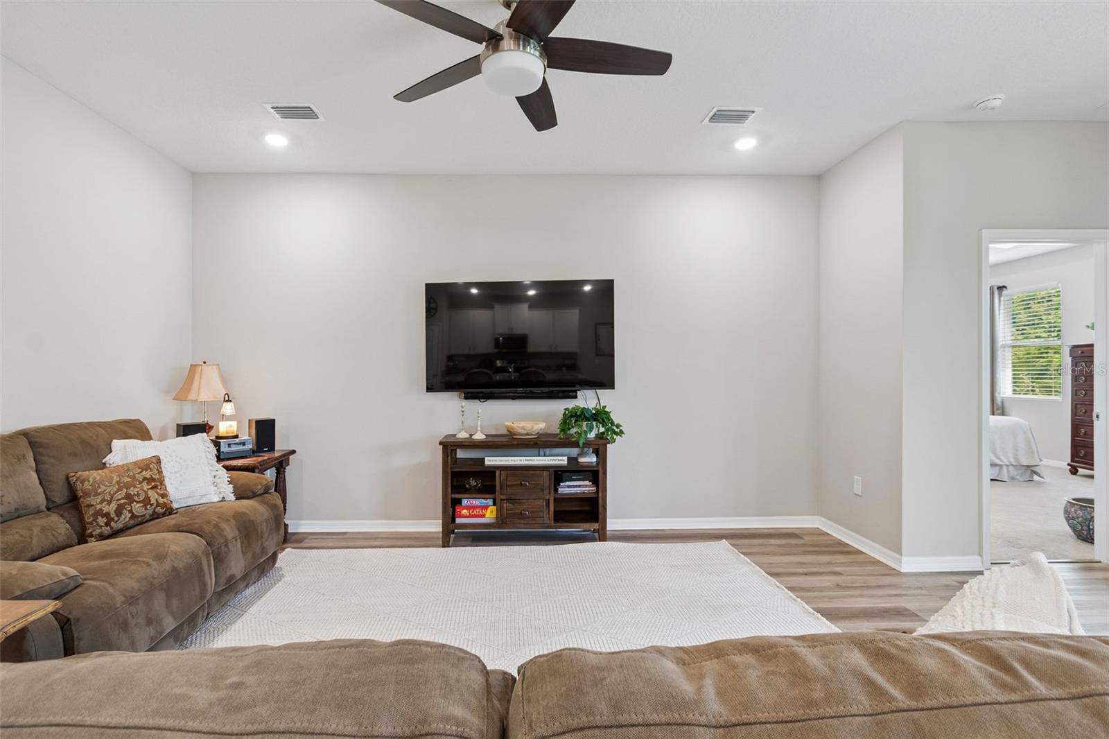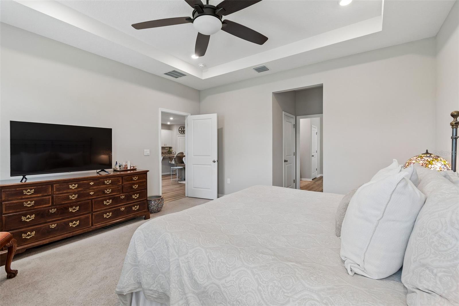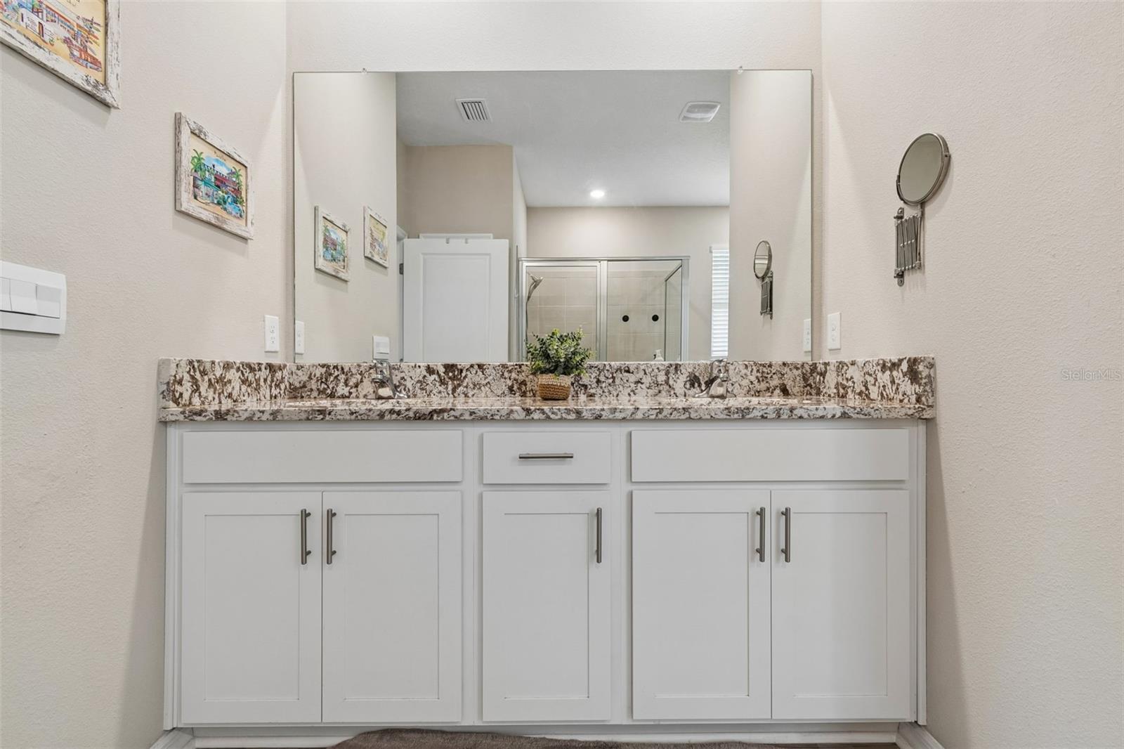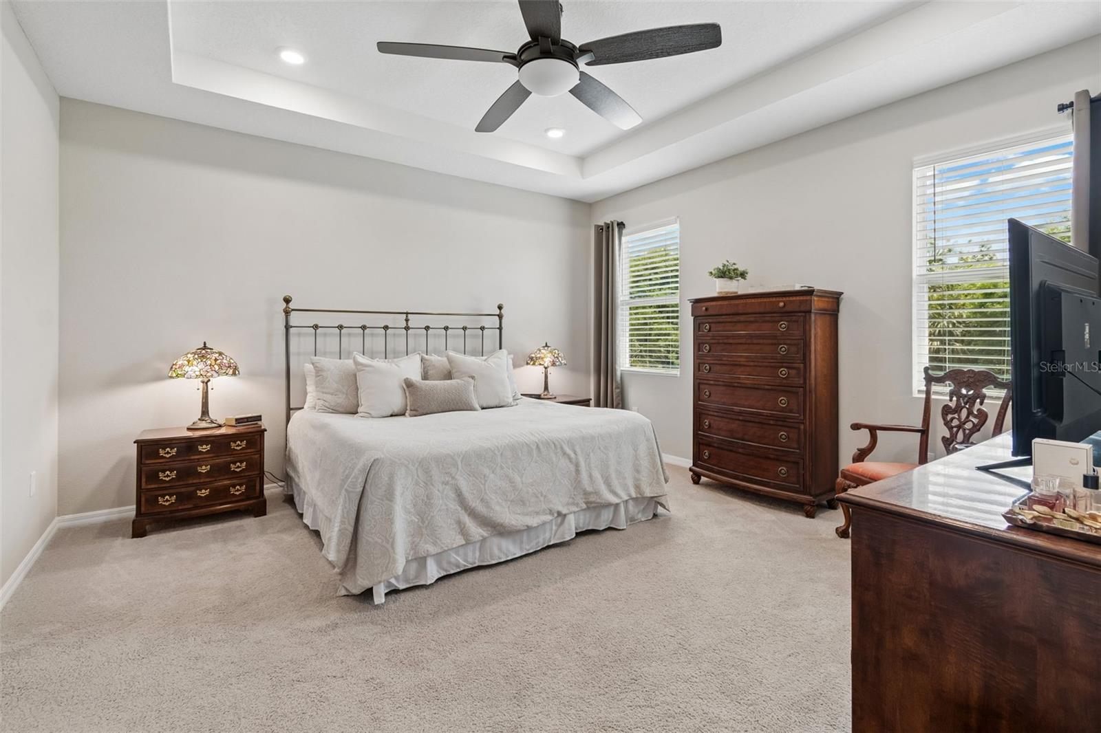 Step into comfort and style with this beautiful 4-bedroom, 2.5-bath all-concrete-block-constructed home in the sought-after Bella Lago community. Built in 2022, this home offers 2,043 square feet of easy living space designed for everyday enjoyment and entertaining. The bright and open floor plan features updated luxury vinyl plank flooring, added plantation shutters, and a gorgeous kitchen with all-white cabinets and granite countertops--a perfect place to gather with family and friends. A whole-house water filtration system and whole-home surge protection add extra peace of mind and convenience, while the screened lanai invites you to relax and take in peaceful views of the preserve, where nature is right in your backyard. The primary suite is a true retreat with a tray ceiling, his-and-hers walk-in closets, and a spacious ensuite bathroom complete with dual sinks, an extra-large vanity, garden tub, separate shower, and private water closet. The garage has been updated with epoxy floors and two hanging storage racks as well. Residents of Bella Lago enjoy access to two resort-style pools, a fitness center, a playground, and a dog park. Come see why this home is truly turnkey and the perfect place to start your next chapter!