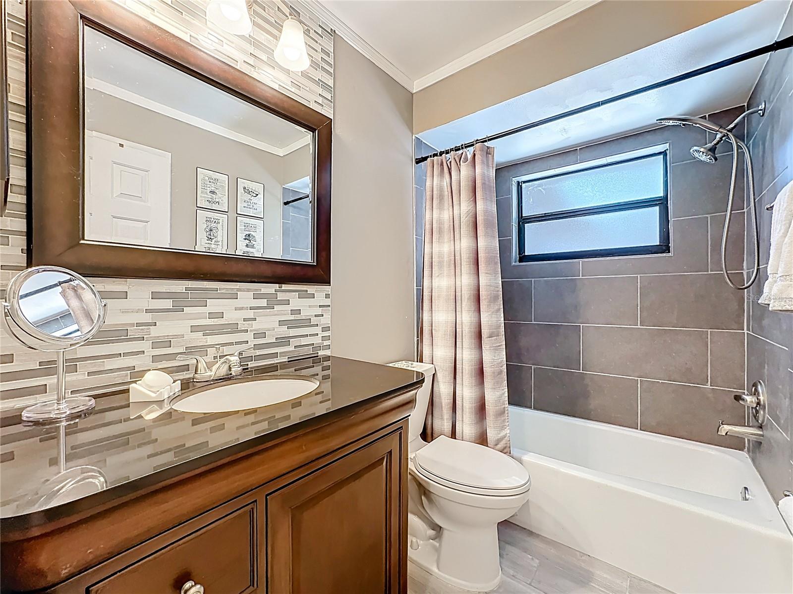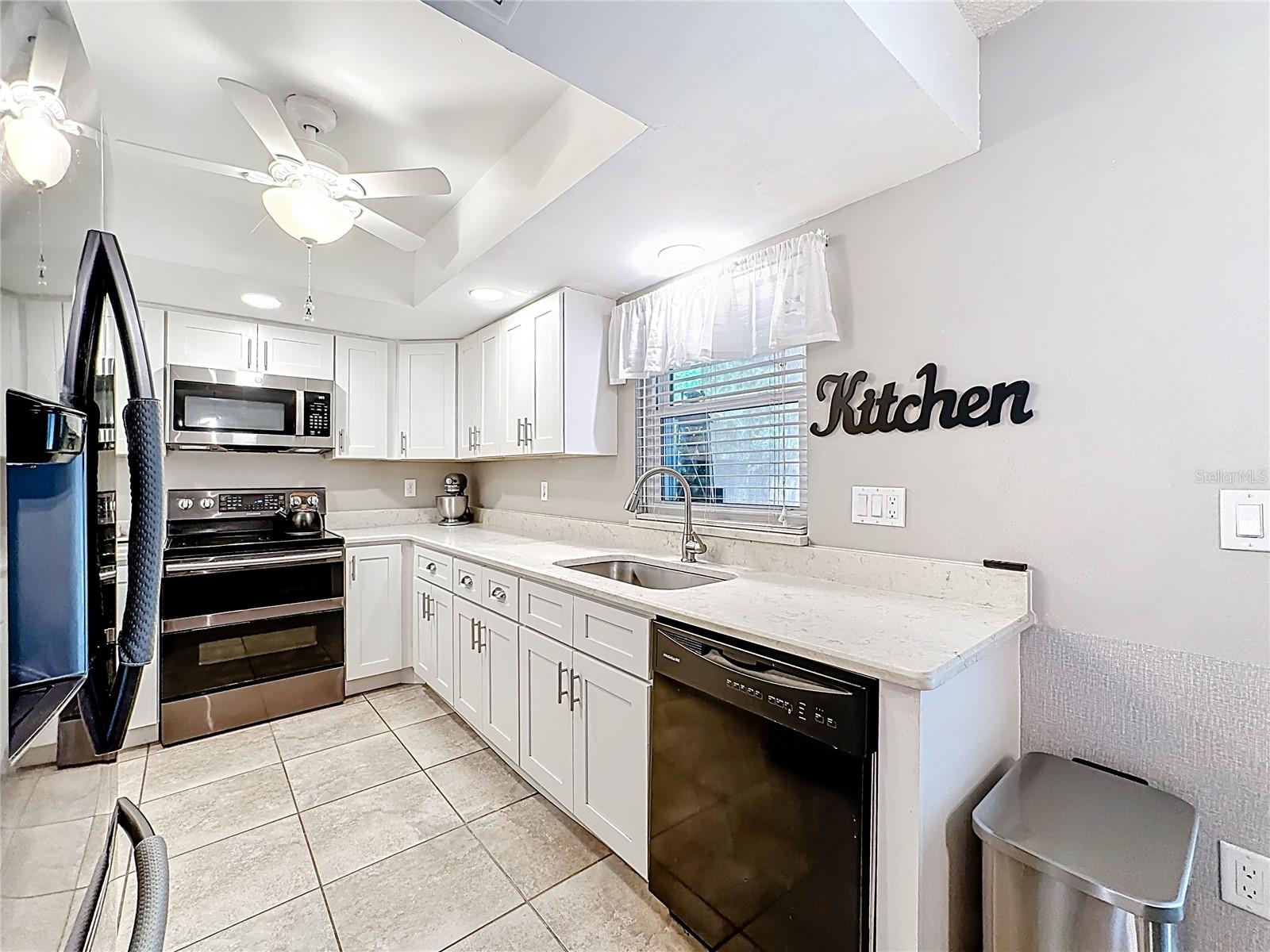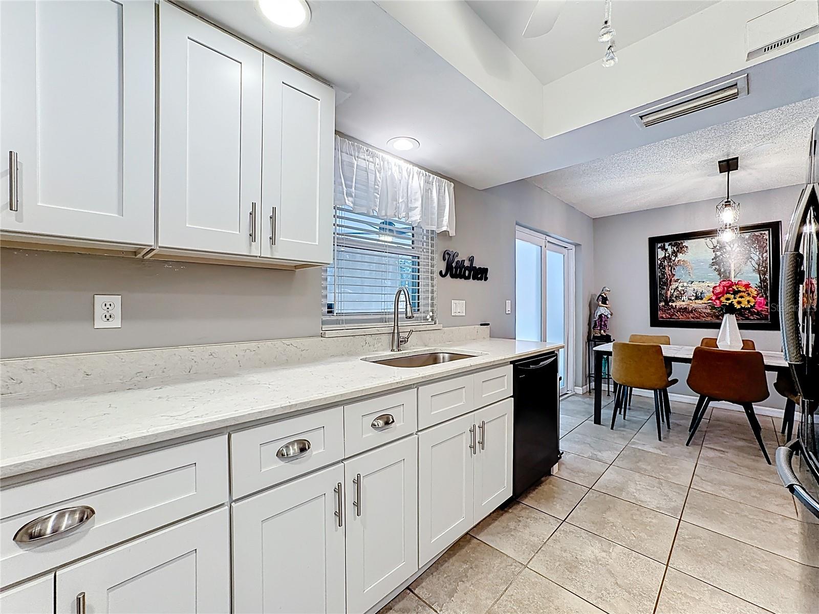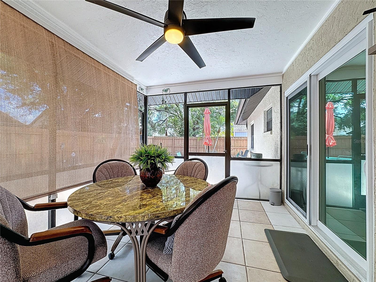 Set on a generous lot with mature trees providing natural shade, this single-story, freshly painted Sarasota home has been carefully updated without losing the character that makes it feel welcoming. The hip roofline and stucco exterior give the home a clean, grounded presence from the street, while new landscaping and a gated side yard hint at the care given throughout, and hurricane/impact windows from 2019 keep you safe from storms.Inside, a foyer separates the front porch from the main living area -- a practical detail that keeps the flow of the home intentional. The living room opens generously at nearly 15 by 20 feet, with vaulted ceilings accented by exposed wood beams, recessed lighting, and a ceiling fan that keeps the space comfortable year-round. Tile floors run throughout the main areas, and the neutral palette makes the space easy to personalize.The kitchen has been remodeled with white shaker cabinetry, quartz countertops, stainless steel appliances, and a peninsula that opens toward the dining area. A sliding glass door in the dining room leads directly to the screened patio, making it easy to move between indoor and outdoor entertaining.This home offers a split floor plan. The primary bedroom has a private en-suite bath featuring a quartz vanity, mosaic tile accent wall, and a dedicated shelf niche. Two additional bedrooms share a second full bath that has been updated with oversized tile in the tub surround and a dark-framed vanity. A laundry area in the garage -- with washer and dryer included -- keeps utility functions out of the main living space.The screened patio (nearly 14 by 10 feet) is finished with tile flooring, a ceiling fan, and roll-down solar shades that filter afternoon light while keeping views of the fenced backyard. It reads as a true extension of the interior -- a place to have coffee or host dinner without the Florida heat. 3.5 miles to Benderson Park; 3.6 Miles to University Town Center; 12.5 miles to Siesta Key BeachRoof 2025, HVAC 2017, Water Heater 2018