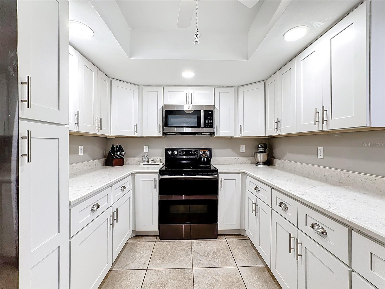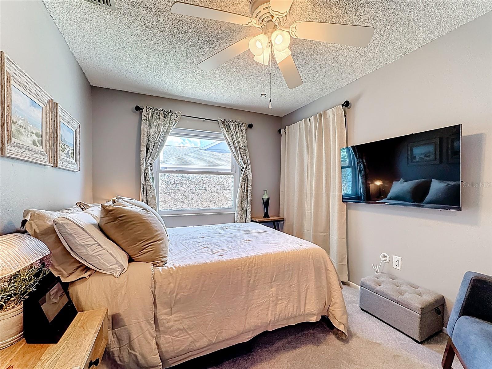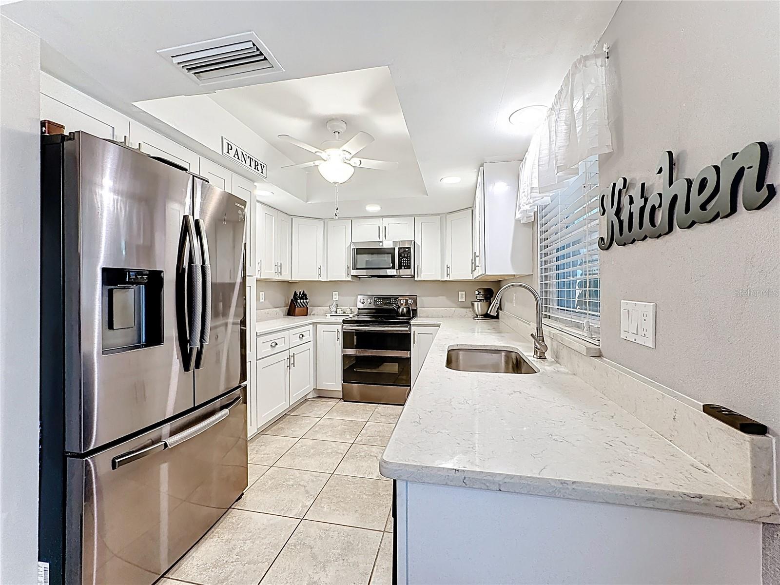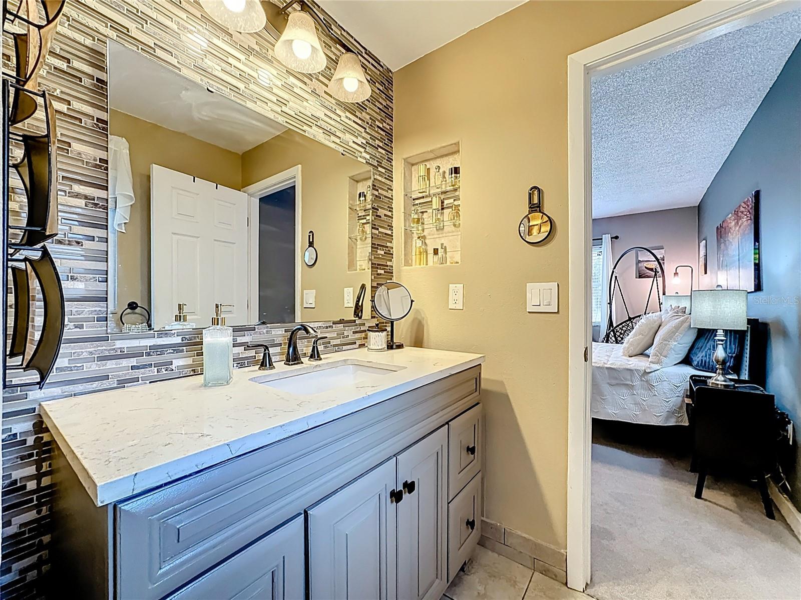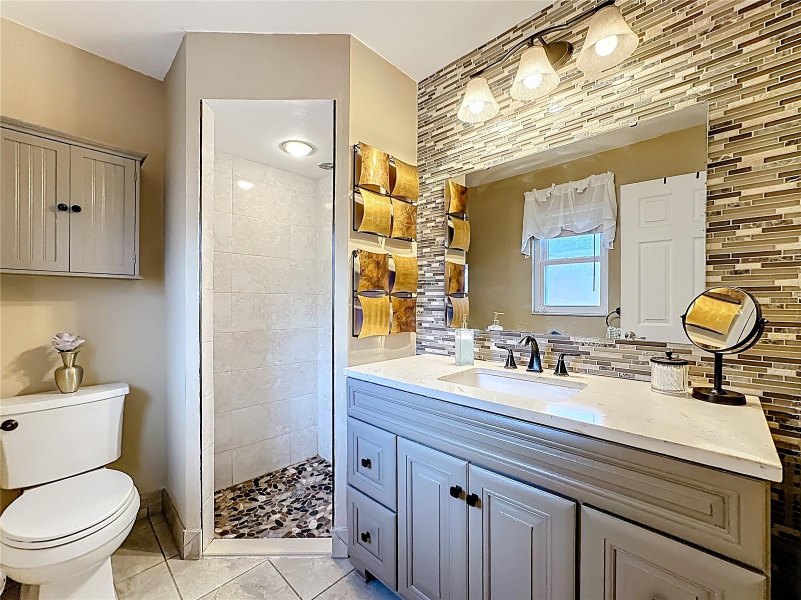 Set on a generous lot with mature trees providing natural shade, this single-story, freshly painted Sarasota home has been carefully updated without losing the character that makes it feel welcoming. The hip roofline and stucco exterior give the home a clean, grounded presence from the street, while new landscaping and a gated side yard hint at the care given throughout, and hurricane/impact windows from 2019 keep you safe from storms.Inside, a foyer separates the front porch from the main living area -- a practical detail that keeps the flow of the home intentional. The living room opens generously at nearly 15 by 20 feet, with vaulted ceilings accented by exposed wood beams, recessed lighting, and a ceiling fan that keeps the space comfortable year-round. Tile floors run throughout the main areas, and the neutral palette makes the space easy to personalize.The kitchen has been remodeled with white shaker cabinetry, quartz countertops, stainless steel appliances, and a peninsula that opens toward the dining area. A sliding glass door in the dining room leads directly to the screened patio, making it easy to move between indoor and outdoor entertaining.This home offers a split floor plan. The primary bedroom has a private en-suite bath featuring a quartz vanity, mosaic tile accent wall, and a dedicated shelf niche. Two additional bedrooms share a second full bath that has been updated with oversized tile in the tub surround and a dark-framed vanity. A laundry area in the garage -- with washer and dryer included -- keeps utility functions out of the main living space.The screened patio (nearly 14 by 10 feet) is finished with tile flooring, a ceiling fan, and roll-down solar shades that filter afternoon light while keeping views of the fenced backyard. It reads as a true extension of the interior -- a place to have coffee or host dinner without the Florida heat. 3.5 miles to Benderson Park; 3.6 Miles to University Town Center; 12.5 miles to Siesta Key BeachRoof 2025, HVAC 2017, Water Heater 2018