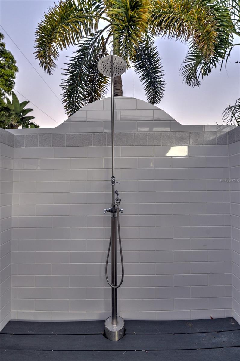 Exterior: French Doors, Garden, Outdoor Shower, Sidewalk