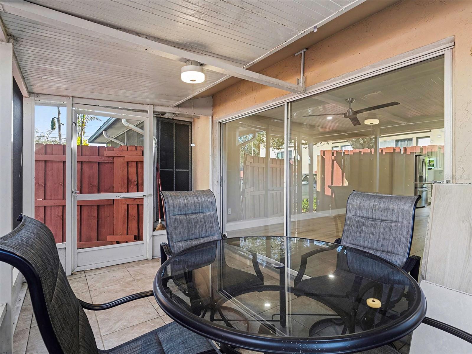 Exterior: Lighting, Rain Gutters, Sidewalk, Sliding Doors, Storage